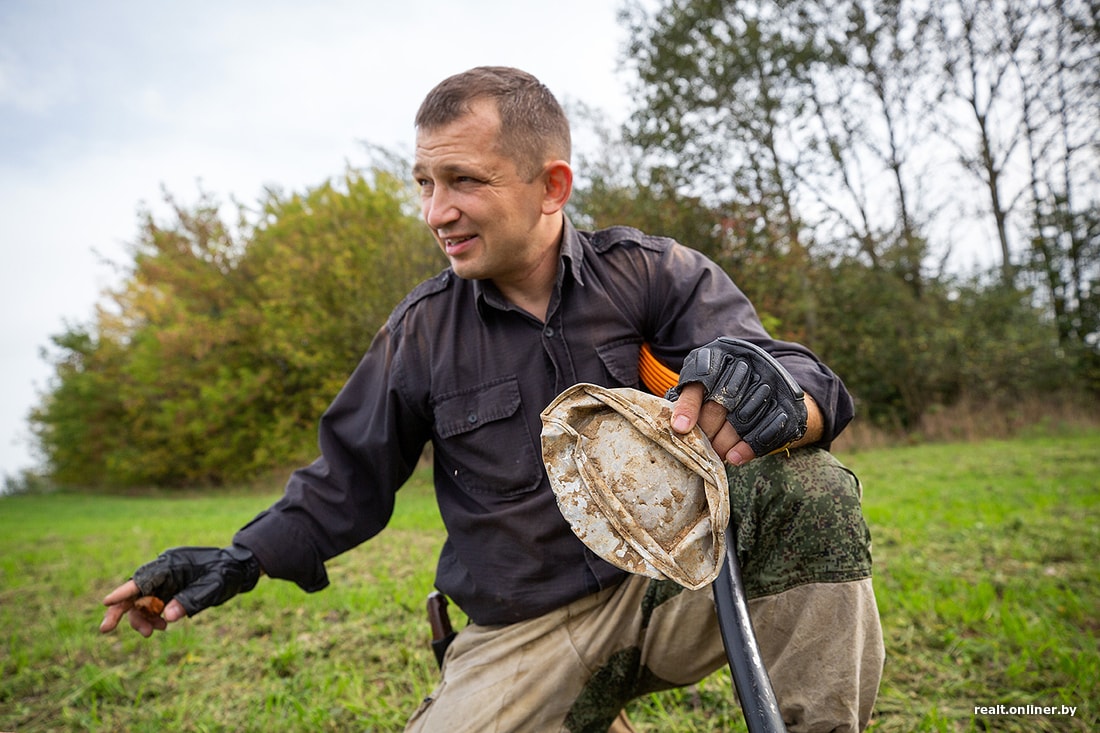 — На одного уходит 5—6 часов. Недавно в Козловичах два дня бойца откапывали: земля твердая там, да и самого его растянуло по полю на метров 5. Может, плуг это был, не знаю. Такое ощущение, что мы целый лунный кратер на том месте вырыли.