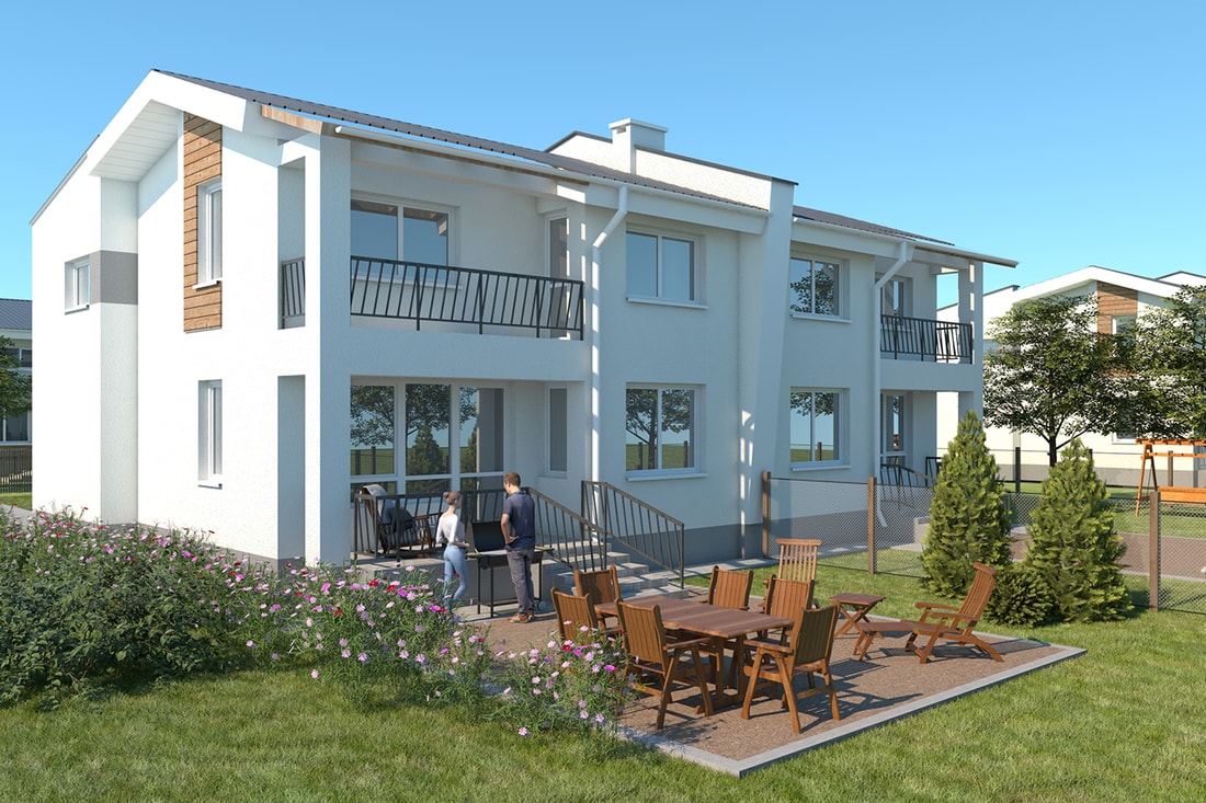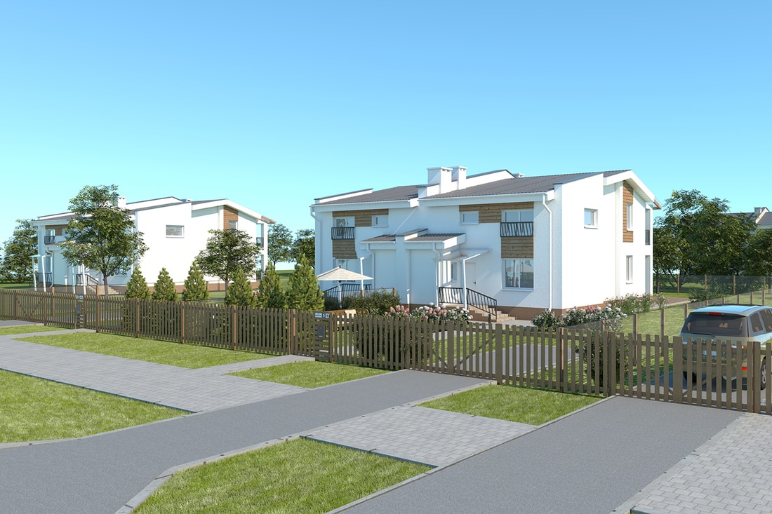 Блокированный двухквартирный жилой дом — это коттедж или таунхаус? На самом деле, ни то и ни другое. Такой тип жилья часто называют дуплексом — дом на две семьи с отдельными входами и одной общей стеной. Таких дуплексов в Соколе уже целая улица.