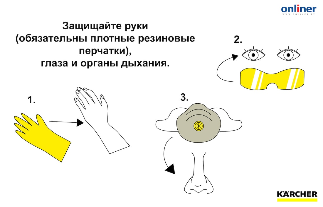 — Занимаясь такой специфической уборкой, когда работать приходится с кислотами, щелочами, порошками и спреями, не забывайте об индивидуальных средствах защиты. Хорошие резиновые перчатки (помимо использования химии, стоит учитывать, что где-то могут оказаться оголенные провода или еще какой сюрприз от электриков), защита глаз и органов дыхания — обязательны. Тогда не только результат уборки будет радовать, но и здоровье удастся сохранить, — заключает Алексей Калинчук.