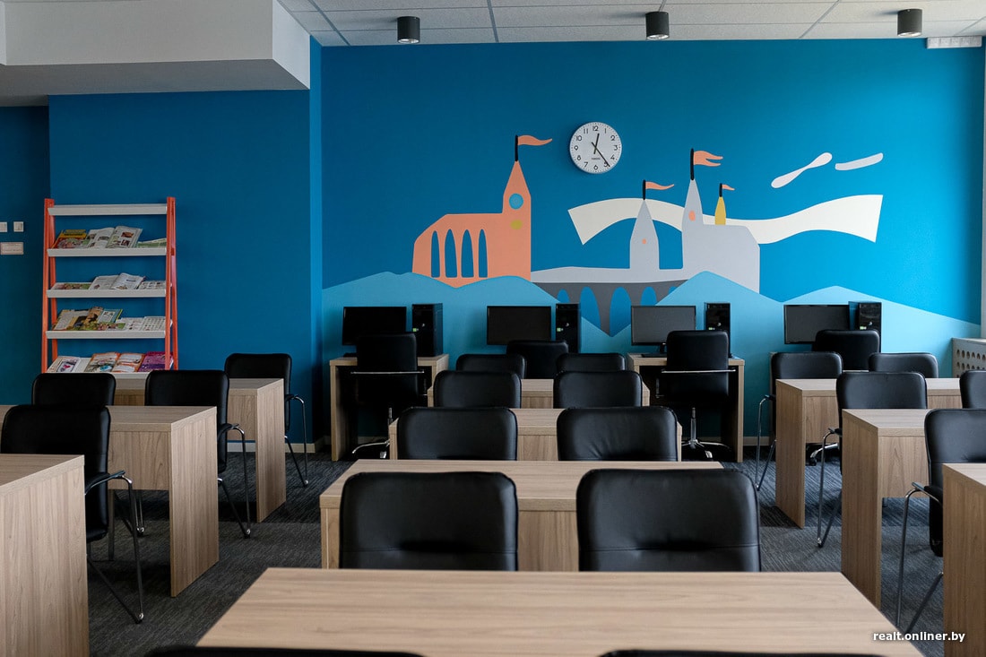 Onliner было непросто добиться аудиенции директора школы. Но в субботу нас пригласили лично на все взглянуть. Как и ожидалось, школа выглядела идеально. (А в противном случае разве в нее бы позвали журналистов?) Поскольку визит был нанесен в выходные накануне осенних каникул, оценить переполненность школы на глазок ни нам, ни читателям не удастся. Придется полагаться на слова и цифры.