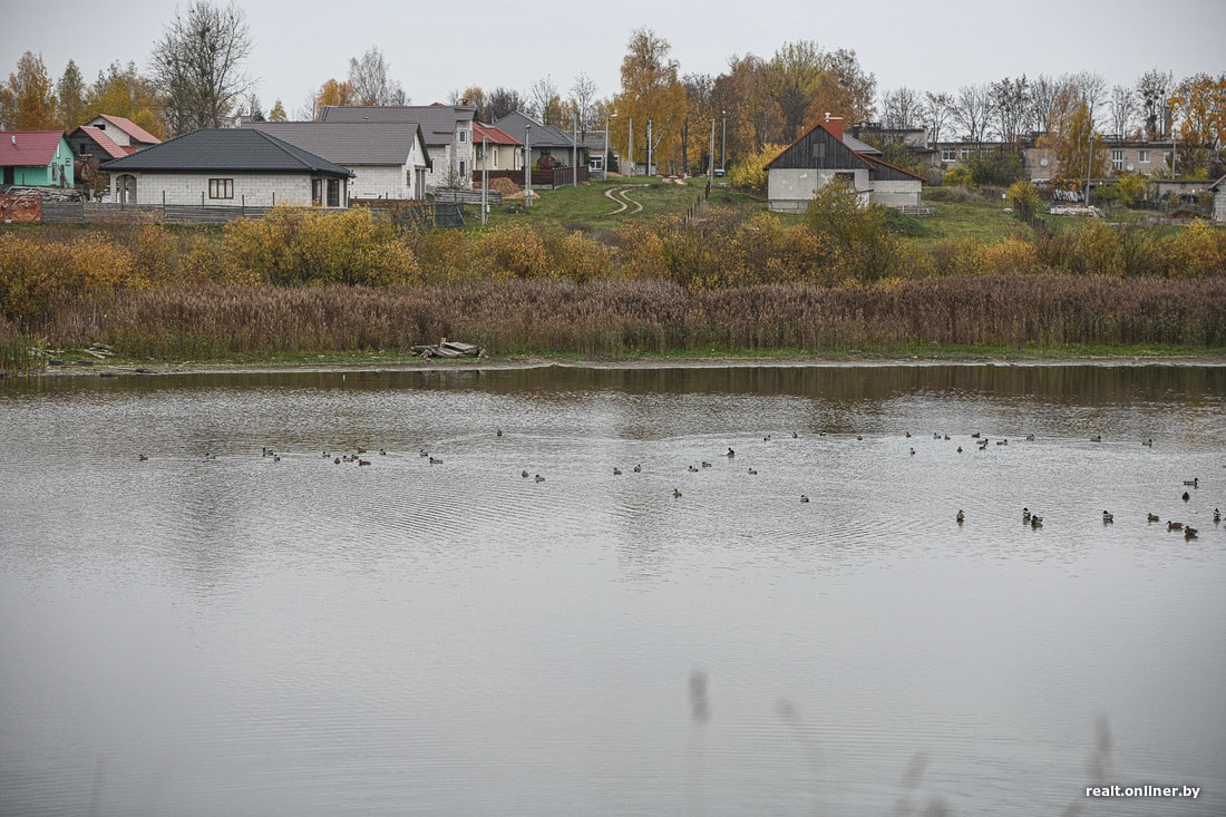 Этот водоем растекся между двух поселков, стоящих у городских окраин. На водной глади отражаются высокие кирпичные дома (говорят, в одном из них аж 64 окна). Жильцы этих коттеджей всю жизнь ловили здесь щупаков и карасей, а потом пришел бизнесмен, и людям пришлось перестраиваться. А это всегда неприятно.