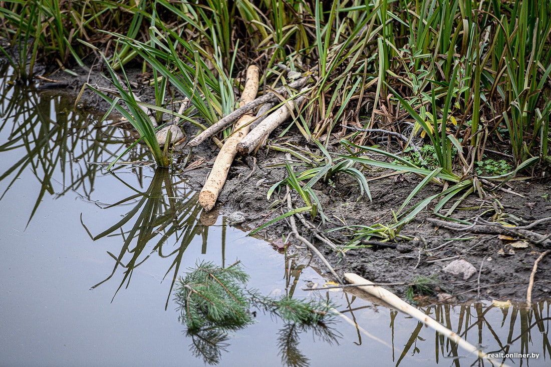 Мы подходим к бобровой плотине — воды здесь стало куда меньше, чем год назад. Самих бобров сегодня нет (видать, уехали в район на совещание, как это обычно бывает на селе). Мосты и лавки Дима уже спилил — предписано властями. Еще ему предложили забрать свою рыбу, но пока парень думает, как это сделать, а параллельно готовит документы для суда. Он уверен, что произошла какая-то глупая ошибка.