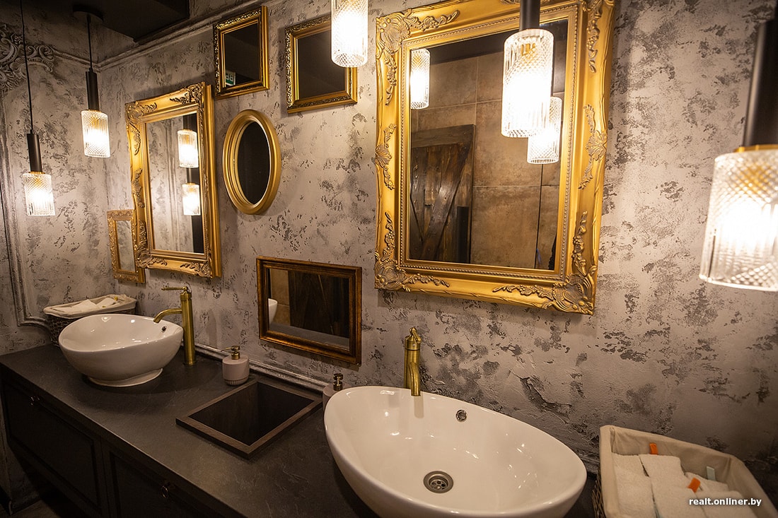 Если владельцы именуют бар The Dickens, то тут явно не будет легкого интерьера. И действительно: черные стены, золотые рамы зеркал, кожаные кресла, камин, книжный шкаф в старинном стиле. В целом атмосфера будто из книги с детективной историей, в которой джентльмены в смокингах что-то расследуют. Преследовалась цель создать интерьер в стиле старинного английского поместья.