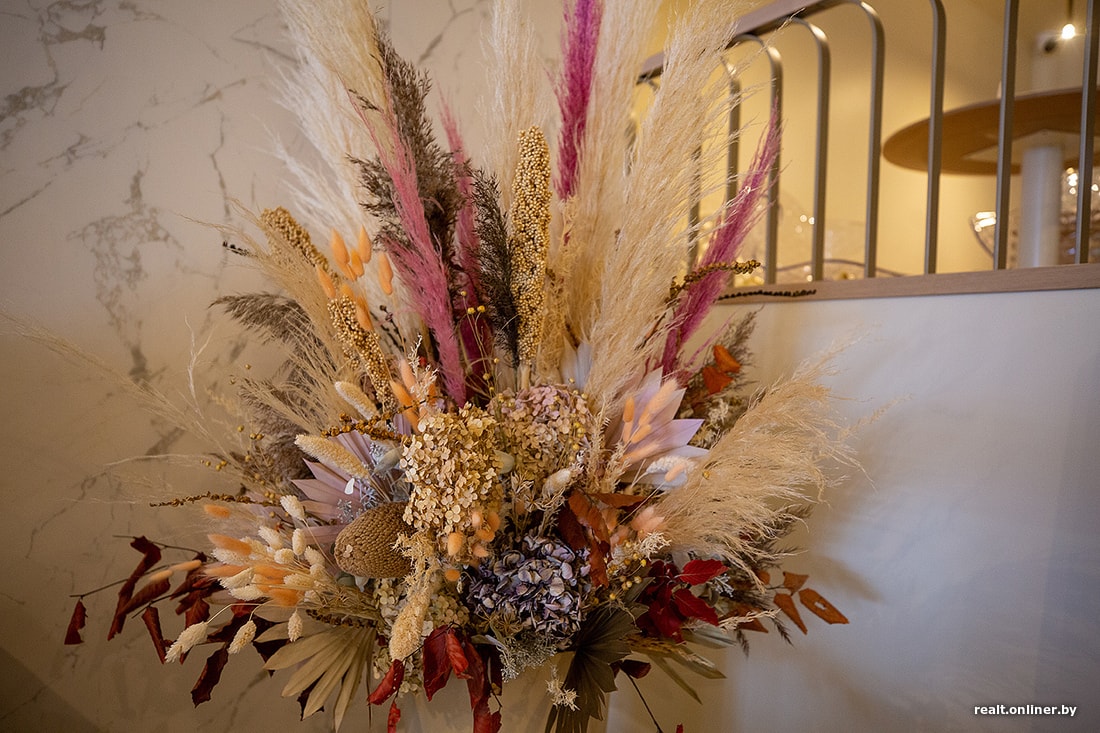 Интерьер — золотисто-хрустальный. Здесь чувствуешь себя в тепле и безопасности. Для интровертов есть места на огороженном подиуме. Но уютнее всего возле огромных окон, подоконники которых украшены сухими цветами. Такая девочковая или блогерская зона.