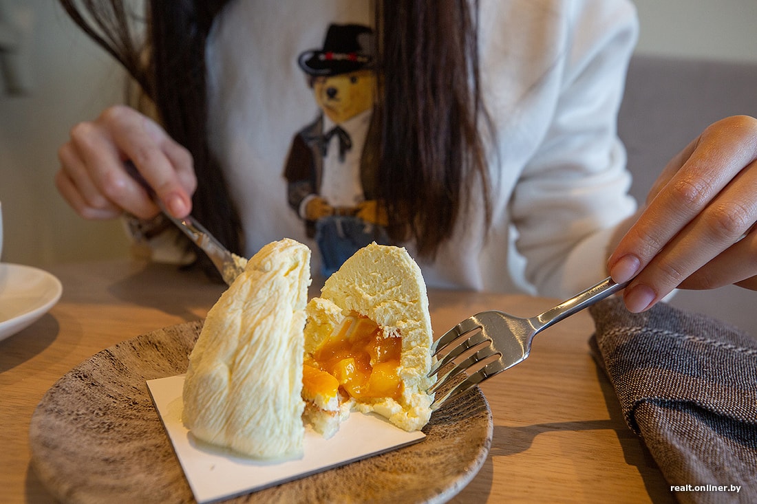 Самое популярное пирожное — пирамидка с манго и кокосом. Так сказала девушка на кассе. И я теперь понимаю почему. Это просто бомба: невесомый кокосовый бисквит, на нем — будто свежие, совершенно не приторные кусочки манго, и все это покрыто нежнейшей белой оболочкой. По вкусу почему-то напомнило «Павлову». Советую.