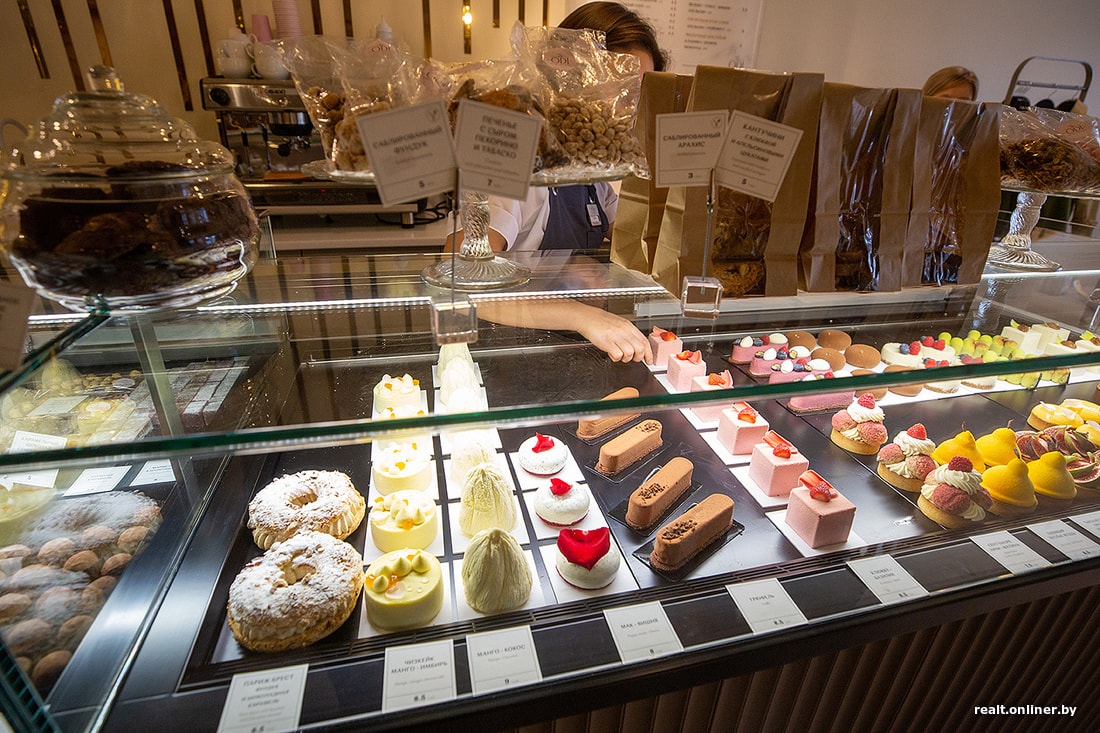 В чем заслуга появляющихся в Минске кондитерских европейского формата? В том, что они дали минчанам, привыкшим к пирожным «Картошка» и корзиночкам с кремом, разнообразие. У нас есть классные кондитеры, которые выдумывают нереальные сочетания. Мастера ODI — одни из них. Но за разнообразие надо платить. Стоимость вкусняшек здесь — 6,5—10 рублей. Два пирожных плюс две чашки кофе равно 25—30 рублей. Имейте в виду.