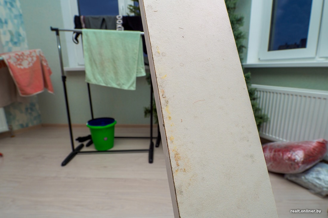 — Самое ужасное, что под ламинатом до сих пор есть вода: я поднял несколько плашек и обнаружил нормальное такое болотце между стяжкой, подложкой и напольным покрытием. Во что это выльется в последующем — можно только предположить, — боится заглядывать в потенциально «плесневое» будущее молодой человек.