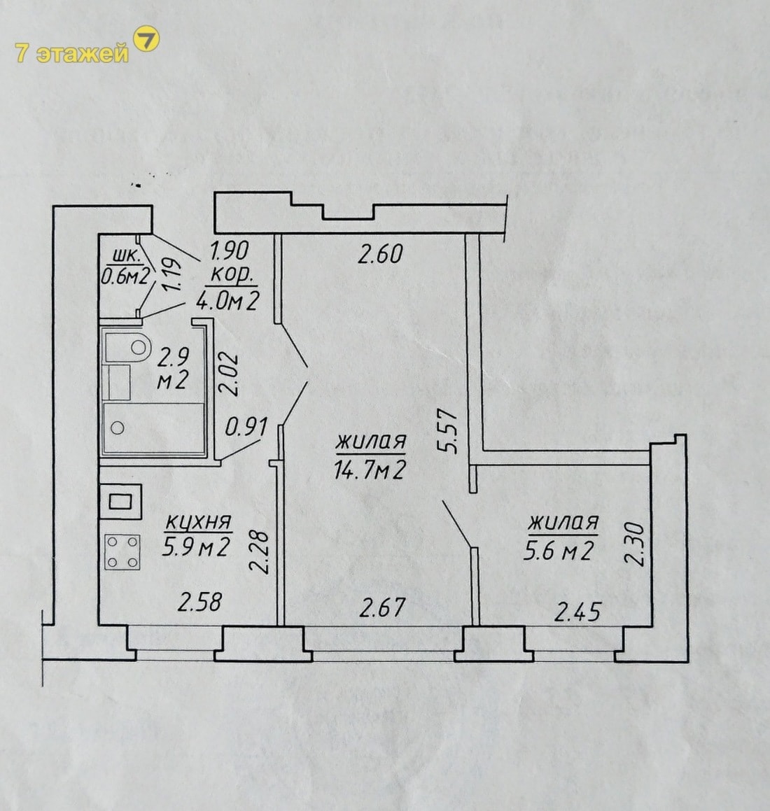 Еще одна симпатичная квартира продается в девятиэтажке 1975 года на Жудро. Здесь почти 35 кв. м общей площади, просторная кухня (7,6 кв. м), прихожая (5,6 кв. м), большая комната и бонус в виде кладовки. Хорошая планировка обыграна качественным ремонтом.