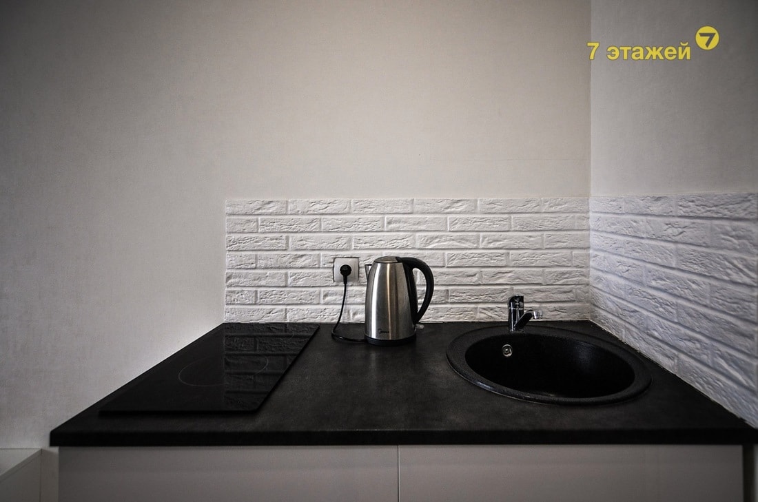 За такую сумму предлагают маленькую студию в Копище. Общая площадь — 25 кв. м, дом 2017 года постройки, есть лоджия, раскладной диван и крохотный кухонный уголок с мойкой и электроплиткой. Конечно, студия больше походит на гостиничный номер, чем на полноценную квартиру, зато цена у нее как у хрущевки.