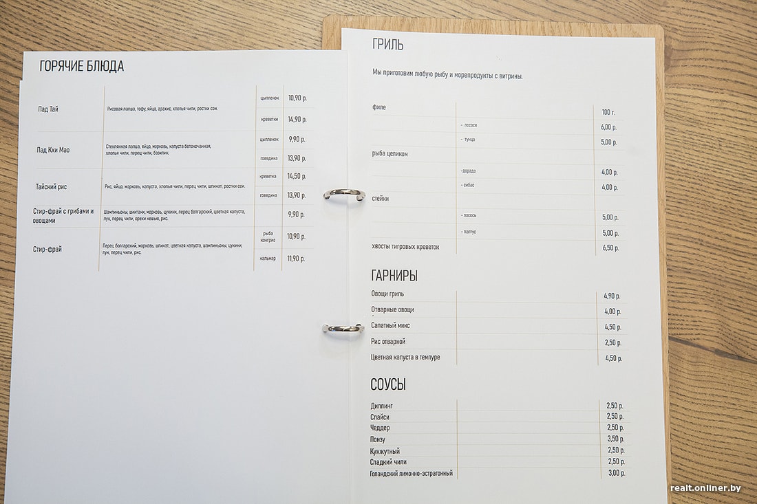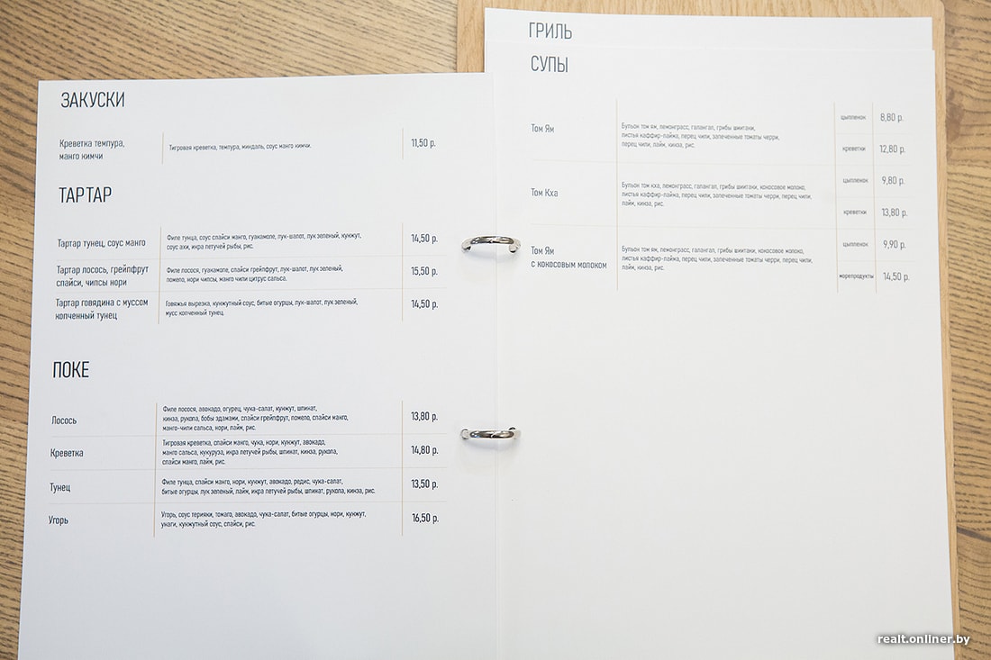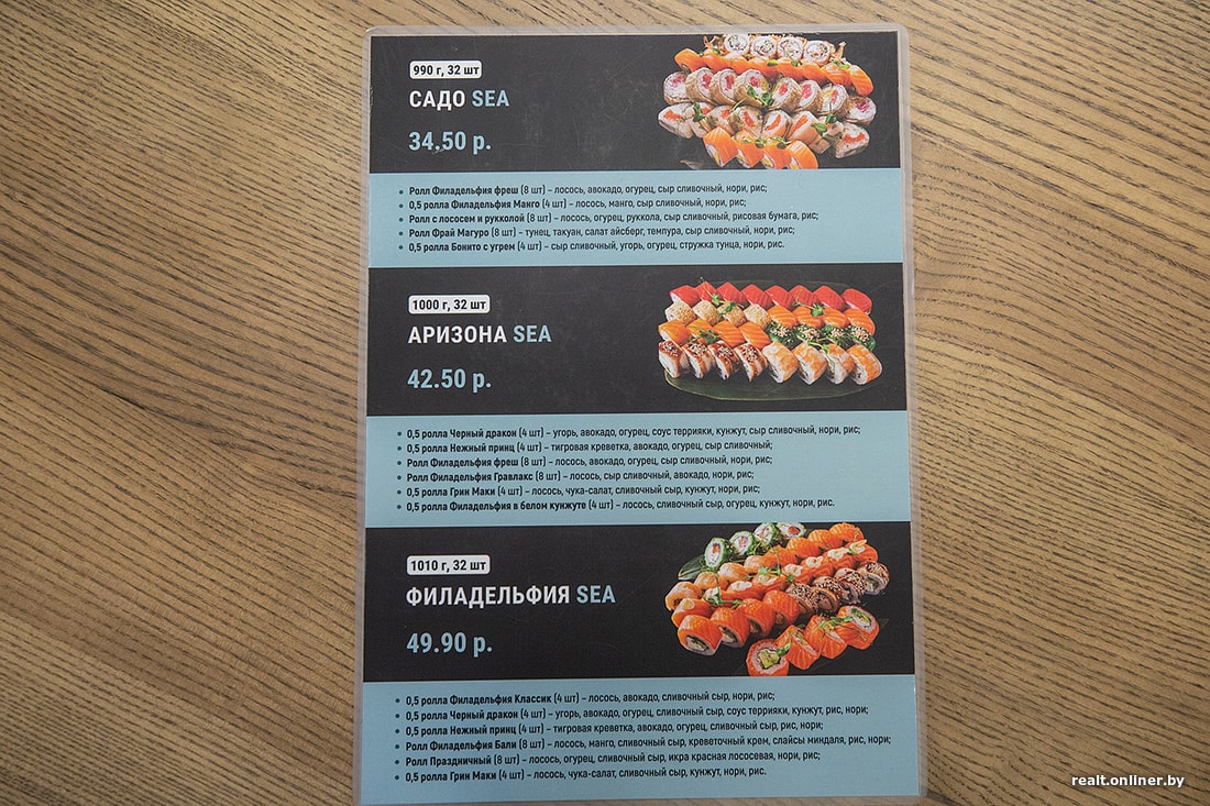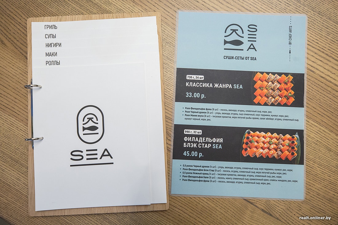 Меню заведения составлялось шеф-поваром Sea Анастасией и командой шеф-поваров Chef Аrts под руководством Александра Кима. Какие-то позиции взяты из сети, какие-то созданы специально для Sea.