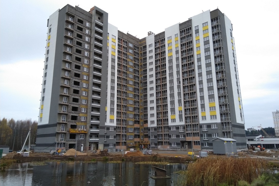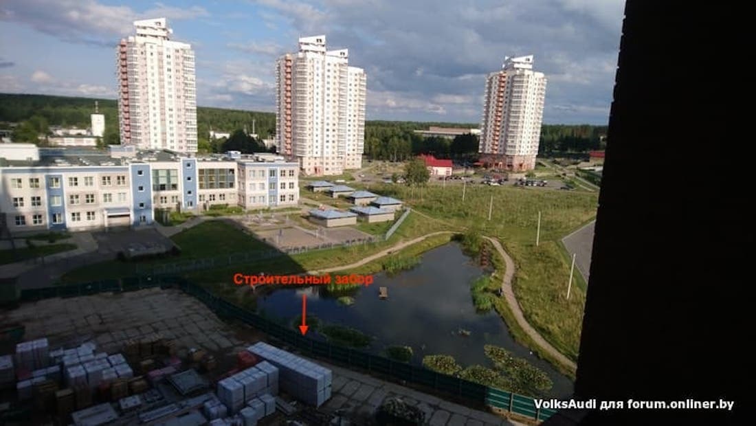 Сначала за дело взялись геодезисты, затем возле пруда развернули строительный городок. Здесь, среди однообразных мапидовских свечек, Минский домостроительный комбинат начал возводить красивый монолитно-каркасный дом на 16 этажей. Людям сразу захотелось в нем поселиться: престижный район, хорошая экология, Музей валунов через дорогу, приемлемая цена метра (от $1068 до $1212), и при этом никаких льготников.