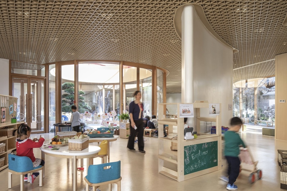 Молодые и дерзкие китайцы Ма Яньсуна из студии MAD продолжают завоевывать мир, но не забывают и о родине. Причем среди их работ в КНР не только огромные районы на несколько сот тысяч квадратных метров (привычный для страны масштаб), но и совсем камерные объекты, которые просто лишний раз доказывают универсальность авторов. Детский сад возведен застройщиком для расположенного вокруг жилого комплекса. Ситуацию осложняло наличие на участке исторической усадьбы XVIII века. Как эффектно решило проблему бюро! Основной корпус сада занял угловую свободную территорию. Рядом с ним расположилась аудитория в форме яркого купола, чья форма интуитивно понятна детям. С историческими корпусами все это связала эксплуатируемая крыша, решенная в тех же оттенках. Здесь сформированы закрытые безопасные внутренние дворы, в которых были сохранены деревья. С крышей они соединены большим количеством лестниц, пандусов и горок. Все это формирует почти бесконечное в своем разнообразии пространство для игр.