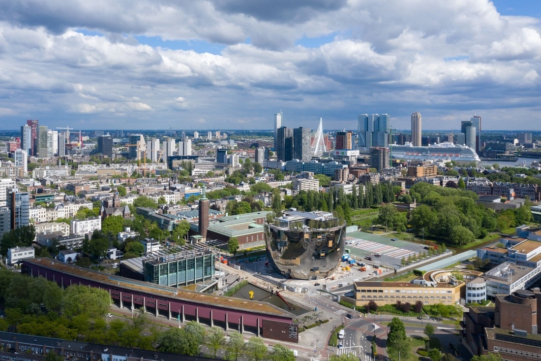 От проекта датского BIG переходим к объекту другой авторитетной архитектурной студии под мудреной аббревиатурой — нидерландской MVRDV. Как и их соседи из Дании, сейчас голландцы уже работают по всему миру, но в данном случае речь идет об их новом опыте в родной стране. Он заставил о себе говорить еще на этапе рендеров, и вот результат готов, хотя для посетителей заработает только в следующем году. Зеркальное остекление уже вышло из моды, но в данном случае его использование оправданно. В MVRDV просчитали, что благодаря ему массивное сооружение будет растворяться в окружающем пейзаже. Самое эффектное решение, впрочем, далеко не это, а березовая роща из 75 взрослых деревьев на крыше. Там же и ресторан, но обычные посетители смогут пользоваться не только этими объектами. Построенное фондохранилище станет продолжением музейного пространства. Запасник будет открыт для гостей, которые смогут понаблюдать за его работой со стороны, то есть ознакомиться с работой реставрационных мастерских и посмотреть предметы искусства, которые никогда не попадают в основную экспозицию роттердамского музея.