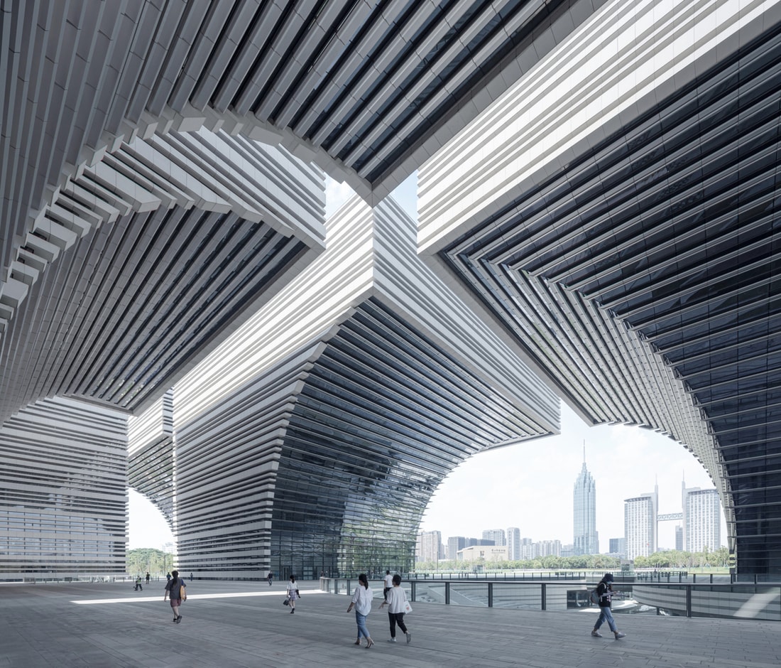 Этот крупномасштабный комплекс от активно работающих на китайском рынке немцев из gmp Architects стал частью нового центра относительно скромного по местным меркам (население «всего» около 4,5 млн человек) города Чанжоу. Скромность при этом понятие, конечно, весьма относительное: получившийся результат подошел бы и для куда более крупного мегаполиса. Шесть корпусов-модулей, каждый из которых занимает квадрат со стороной в 70 метров, предназначены под конкретные цели. В одном разместилась художественная галерея, в другом — отель, в третьем — библиотека, в четвертом — офисы и т. д. Благодаря своей форме они одновременно служат и своеобразным «зонтиком», накрывающим общественное пространство, «плазу», под ними. Все это не только соседствует с местным муниципалитетом и Гранд-театром, но и дополняется большим парком. А объединяет между собой все эти крупные формы русло искусственной реки. Получилось как любят в КНР — внушительно.