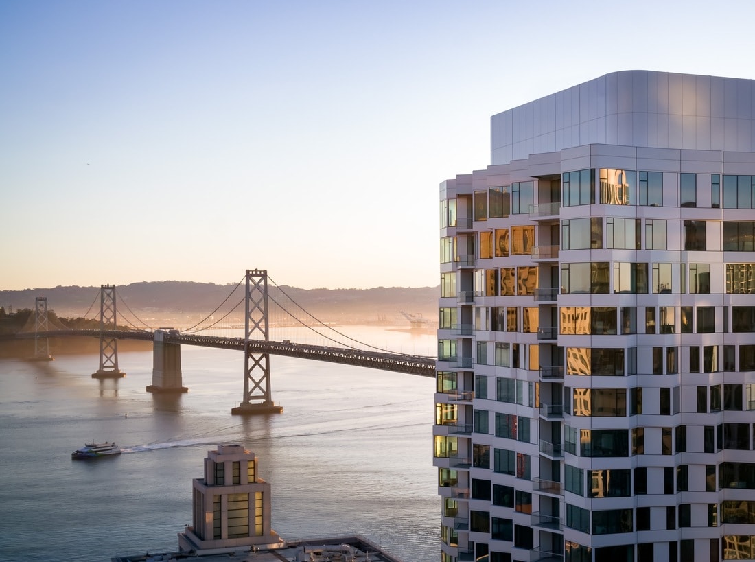 Настоящий современный небоскреб, где непростая форма имеет строгое обоснование. Во-первых, сложная система закручивающихся эркеров (их паттерн повторяется каждые 11 этажей) обеспечивает квартиры внутри дополнительным светом и видами — все апартаменты, вне зависимости от расположения, получаются угловыми. Во-вторых, такой фасад лучше сопротивляется сильным ветрам, привычным в Сан-Франциско. Наконец в-третьих (и это очень мило), в отличие от стандартной стеклянной стены высотки, отражающей небо и сбивающей с толку птиц, закрученная MIRA не даст им разбиться — актуальная проблема для увлекшихся экологией муниципалитетов и общественных активистов.