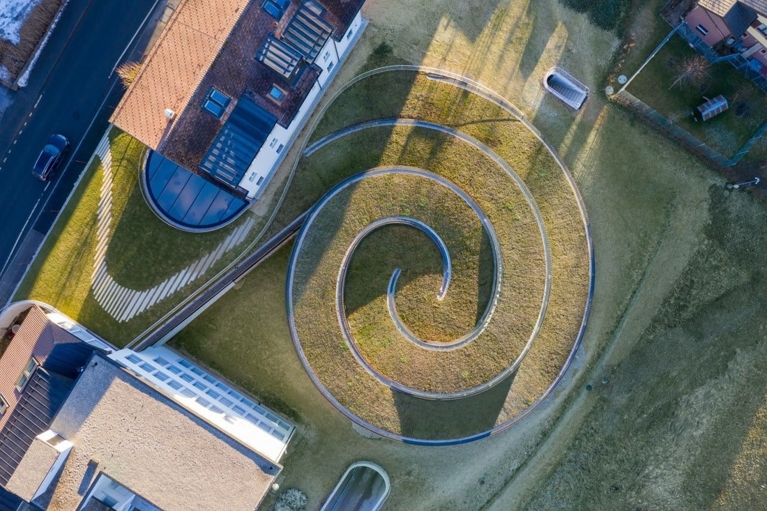 Контрастно и с китайским размахом выглядит следующий объект. Но, с другой стороны, иначе и быть не могло, ведь вокруг не ревущая драконом КНР, а тихая респектабельная Швейцария. Над новым зданием музея и мастерской известных часовщиков Audemars Piguet работало модное бюро BIG датчанина Бьярке Ингельса. В их портфолио в основном крупные объекты, однако Ингельс по-прежнему берется за небольшие, но статусные заказы. Этот из таких. Новый музейный корпус, похожий на часовую пружину, разместился в родной деревне часовщиков Одемара и Пиге по соседству со старым зданием. Для того чтобы он появился на свет, Ингельсу пришлось специально убеждать местный муниципалитет: по местным правилам в деревне можно строить лишь дома со скатными черепичными крышами, но трендовый датчанин настаивал на актуальной плоской озелененной крыше, да еще закрученной в спираль. Что ж, Ингельсу, видимо, сложно отказать.