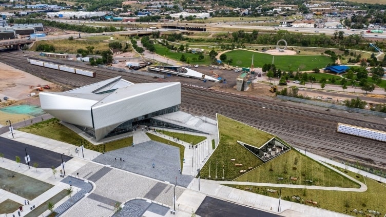 Не для всех очевидно, но штаб-квартира Олимпийского комитета США расположена вовсе не в Вашингтоне, Нью-Йорке или в принципе каком-либо крупном мегаполисе, а в относительно скромном городе Колорадо-Спрингс у подножия Скалистых гор. Он считается центром зимних видов спорта, что, видимо, и сыграло свою роль в решении разместить НОК именно здесь. В этом году тут заработал и музейный комплекс, посвященный славной истории американского олимпийского движения. Основной корпус подчеркнуто современный, но при всей его сложной форме очень функциональный. В каждом из «лепестков» здания, облицованных панелями из матового анодированного алюминия, разместилось выставочное пространство, а сообщение между ними идет по наклонному пандусу. В соседнем объекте с озелененной крышей находится кафе (оно же образовательный центр), а между корпусами нашлось место и для амфитеатра для общественных мероприятий.