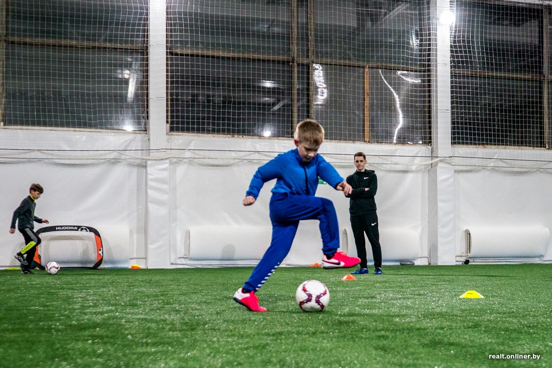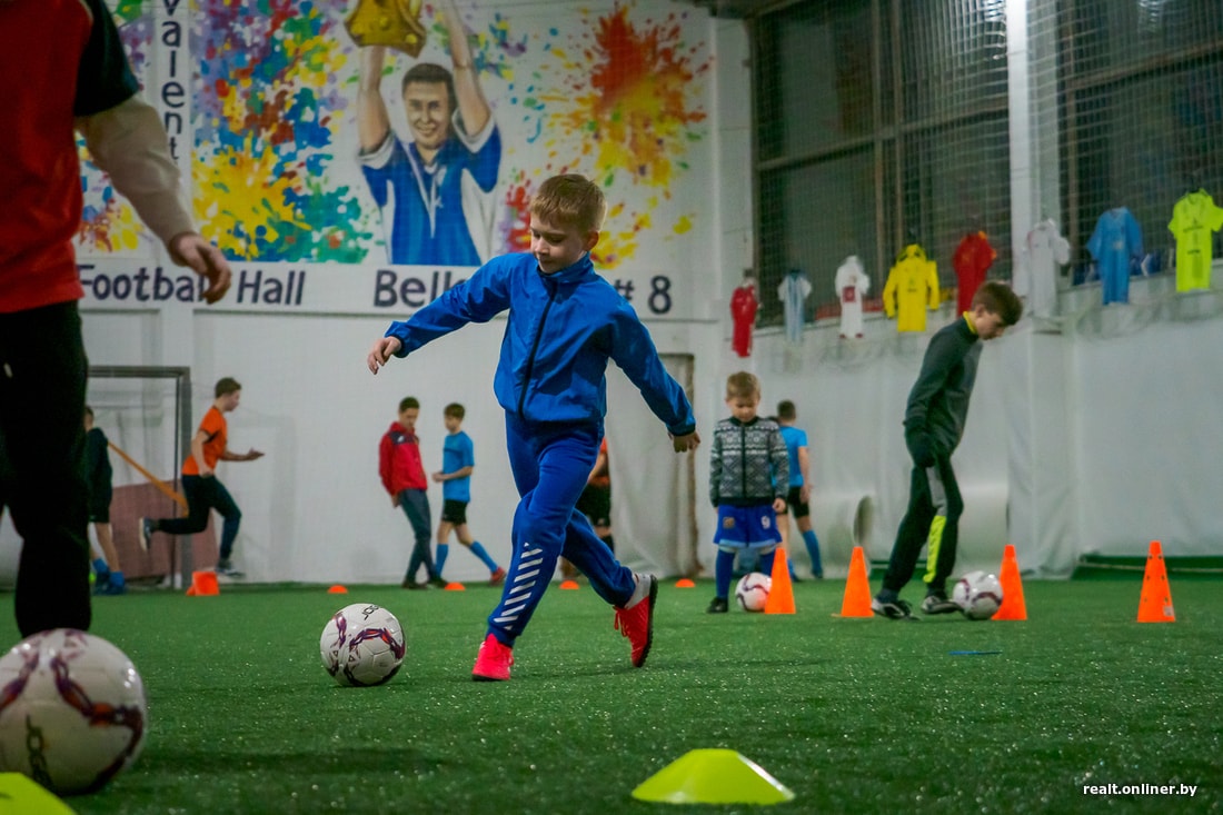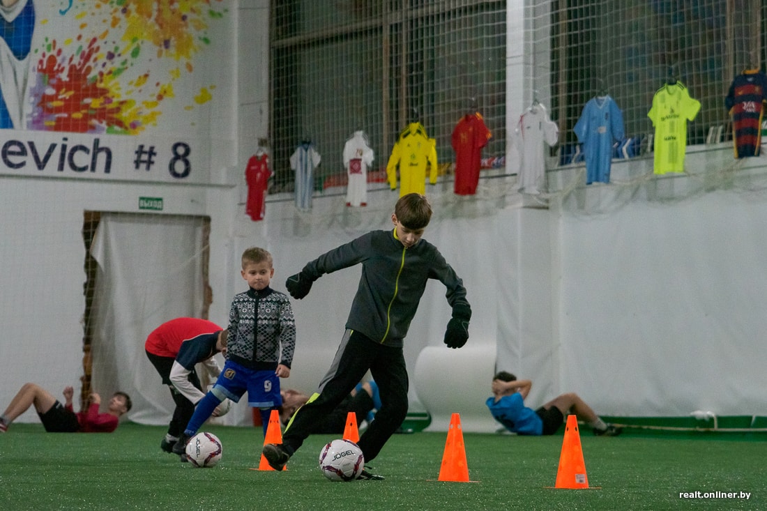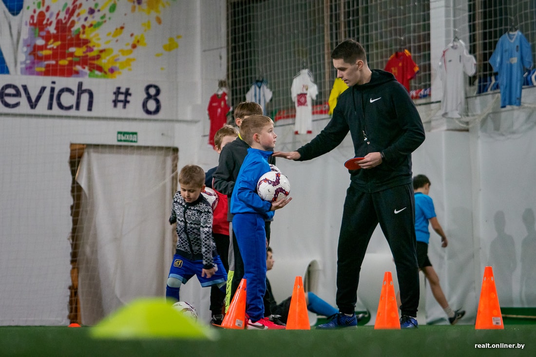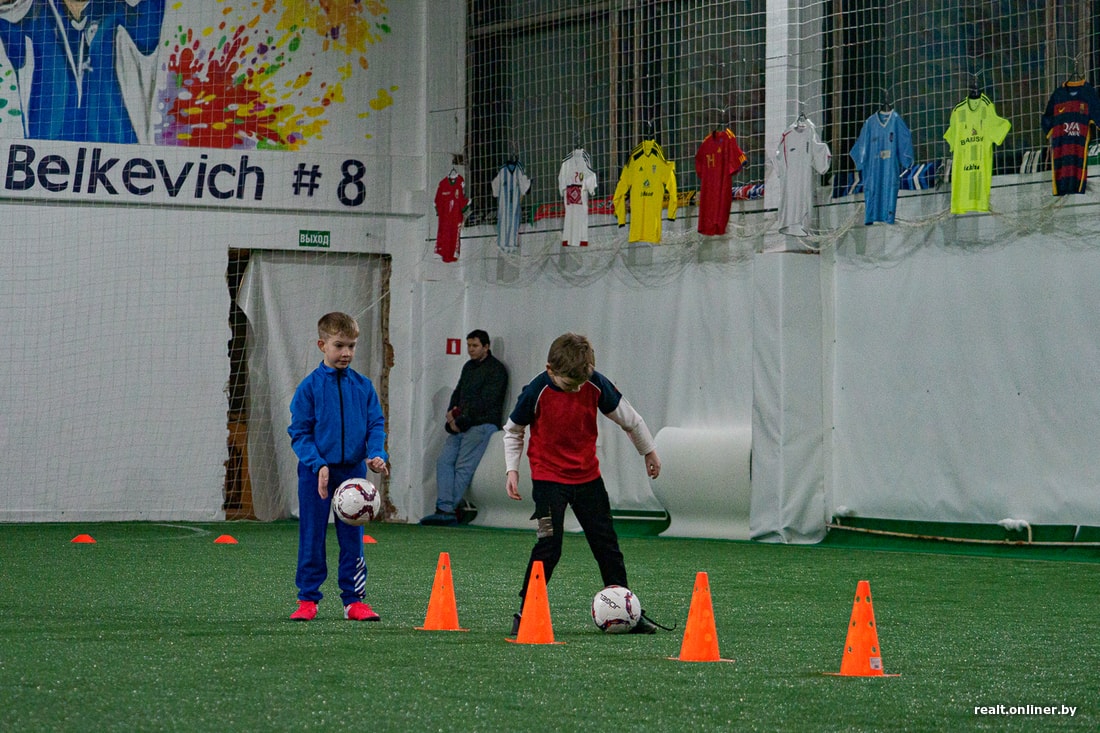 — С самого начала мы, как любители футбола, решили, что будем создавать в своем манеже особую атмосферу: не просто крашеные стены скучного цвета, а что-то запоминающееся. Так появилась надпись «Месца, дзе жыве футбол», а еще портреты лучших, по нашему мнению, футболистов в истории суверенной страны — Александра Глеба и Валентина Белькевича. Уверен, что дети, которые будут приходить тренироваться в зале, должны знать этих людей, их достижения и роль белорусском спорте.