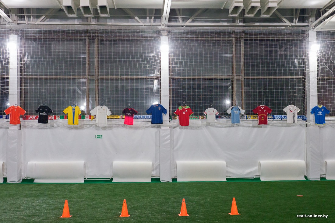 На боковых стенах зала мы хотим собрать коллекцию маек. Пока их 24, но надеемся, что клиенты тоже захотят поучаствовать в этом деле и добавят свои «трофеи»: из 80-х, 90-х, свежие — любые. Кстати, уже сейчас есть уникальные экземпляры — например, оригинальная майка Хаби Алонсо из сборной Испании, Станислава Драгуна с легендарной вышиванкой на груди.