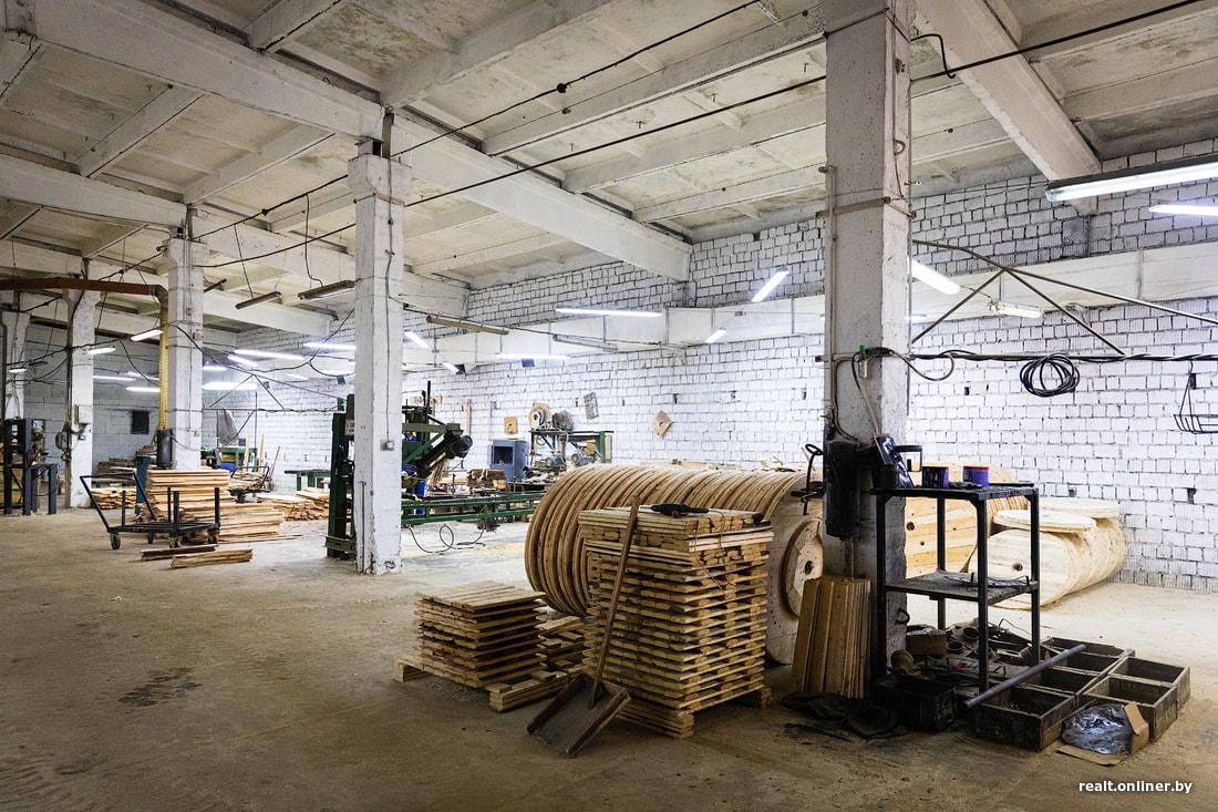На нем нас встречает владелец небольшой частной компании, которая занимается производством поддонов. Здесь работает всего 12 человек, все — местные.