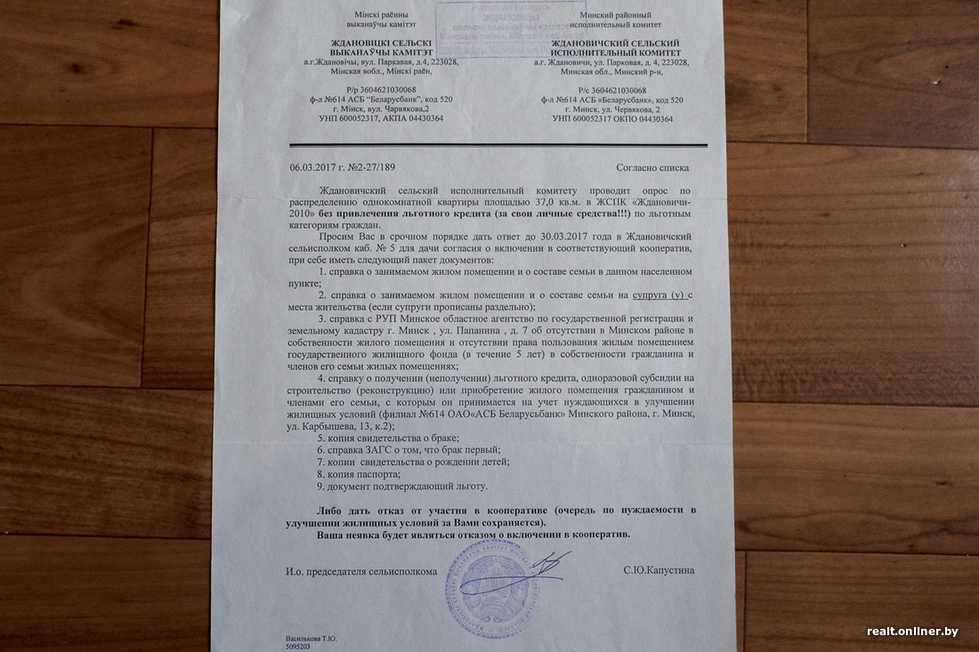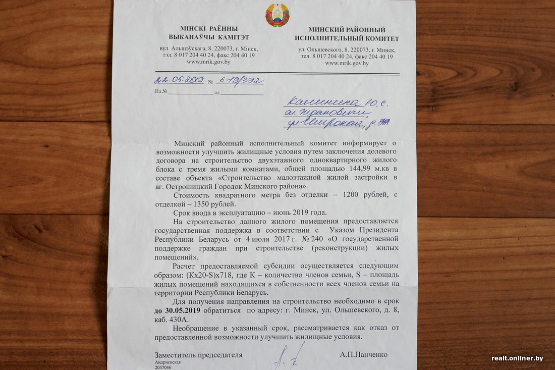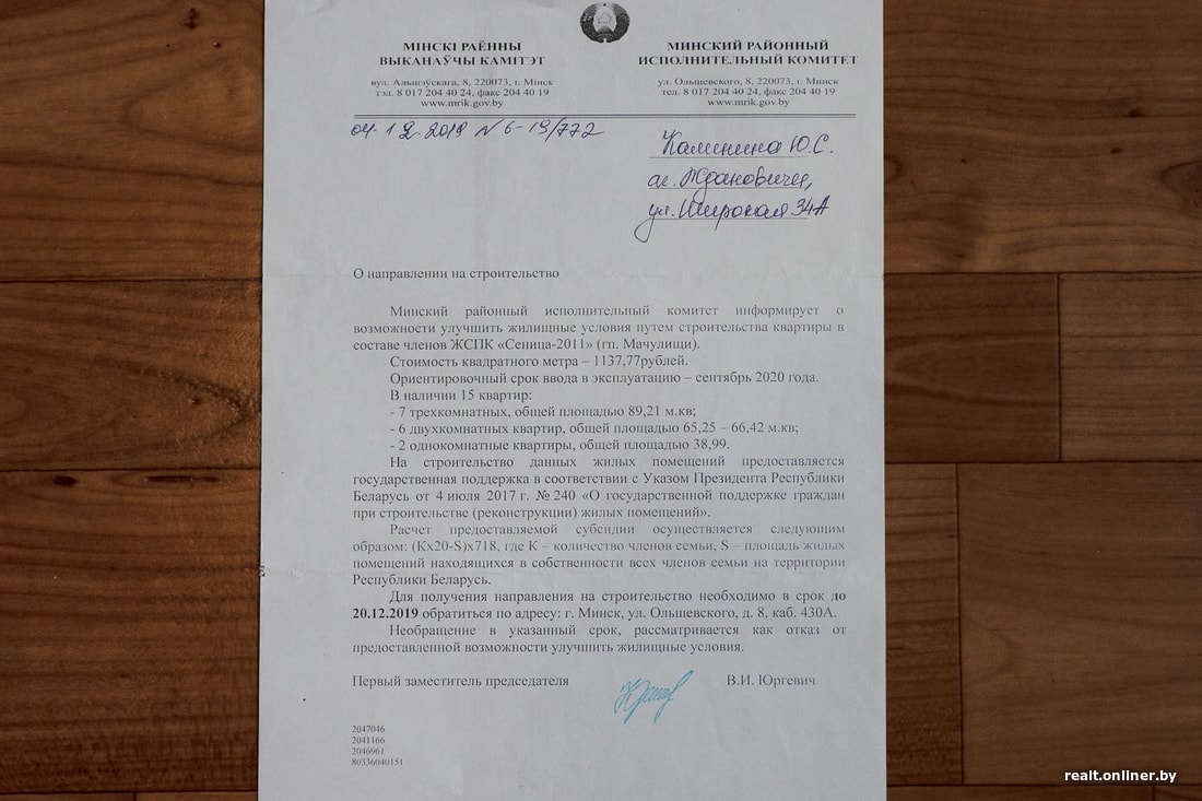 Вместе с женой они убеждены, что не требуют от государства чего-то сверх положенного — речь лишь о том, что обещано по закону. Поэтому исправно шлют письма и в райисполком, и в вышестоящие организации — например, в Комитет государственного контроля, Администрацию президента.