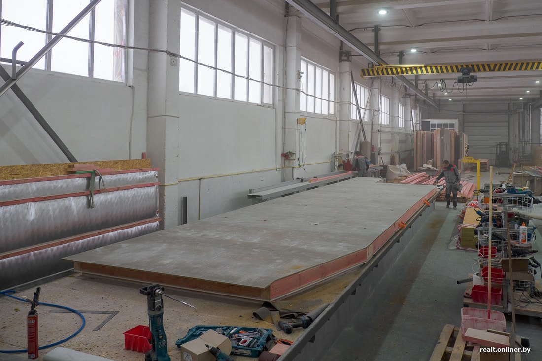 Именно каркасно-панельные дома производит фирма «Ляховичидрев Экспорт». Она не занимается их строительством и продажей конечному потребителю — для этого существуют отдельные фирмы-застройщики, о которых расскажем позже. Производитель лишь изготавливает в цеху «полуфабрикаты», большинство которых уедет за границу.