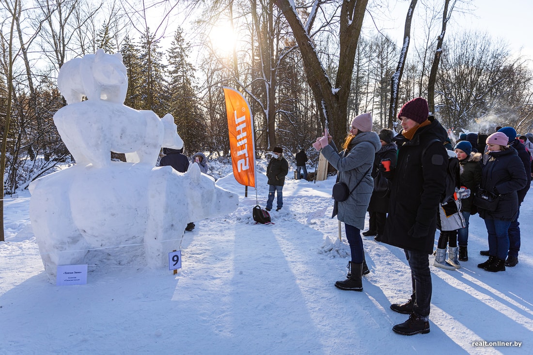Последние несколько дней мастера с пилами и лопатами делали невероятно сложные вещи из снега и льда. В фестивале принимают участие восемь команд профессиональных скульпторов и десять студенческих команд. Сегодня выставка открылась. Посетителям предложили чай из самовара и сушки, для детей оборудовали небольшую снежную горку. Посмотрели, как здесь все выглядит.