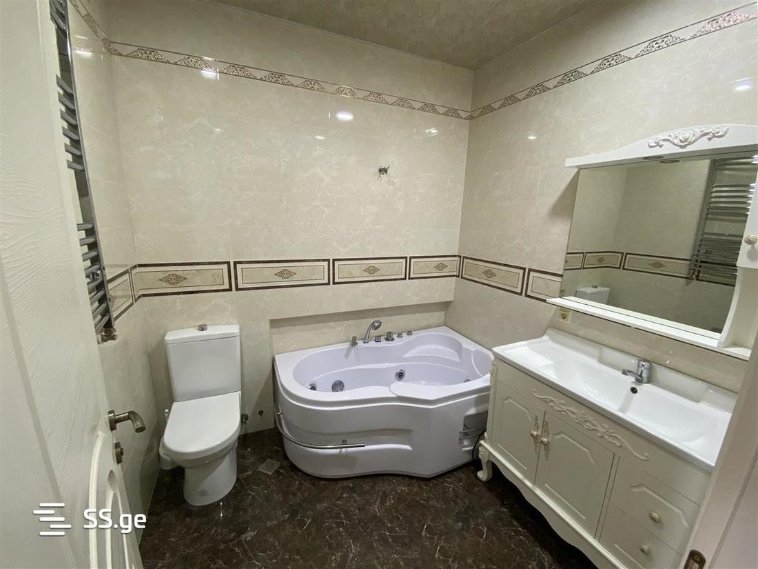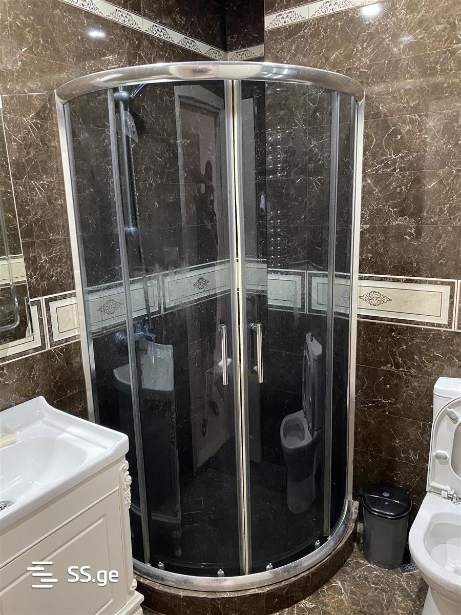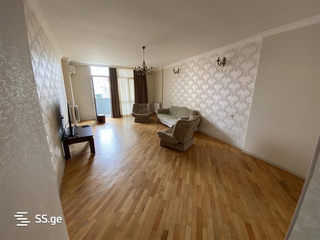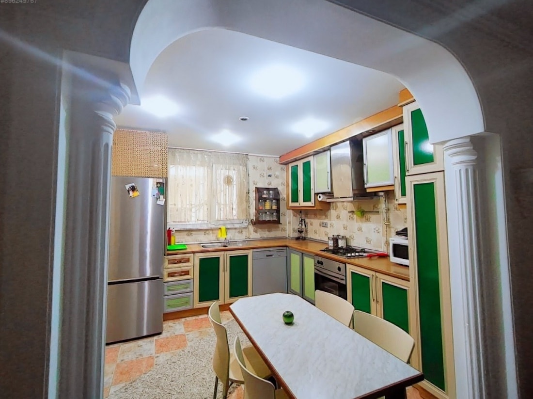 Всего $170 просят за трешку с симпатичным ремонтом, которая тоже находится на третьем этаже. Девяносто «квадратов» разделены между гостиной, спальней, комнатой, похожей на рабочий кабинет, маленькой кухней и санузлом. Отопление газовое. Встроена система «умный дом». Во дворе — детская и спортивная площадки, открытая автостоянка. Рядом — остановки общественного транспорта, торговый центр и рынок, больница, несколько школ, мечеть.