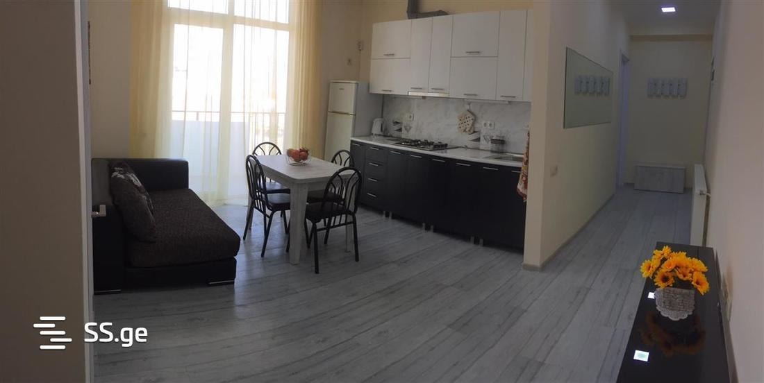 Оторвав от своего сердца $300, можно арендовать свежеотремонтированные 120 «квадратов». Просторная кухня-гостиная, две спальные комнаты, два санузла (в одном из них — ванная-джакузи, что для Грузии большая редкость, обычно хозяева устанавливают душевые кабины). Газовое отопление. Что еще нужно для счастья? Конечно, море. И оно, не поверите, ближе, чем кажется.