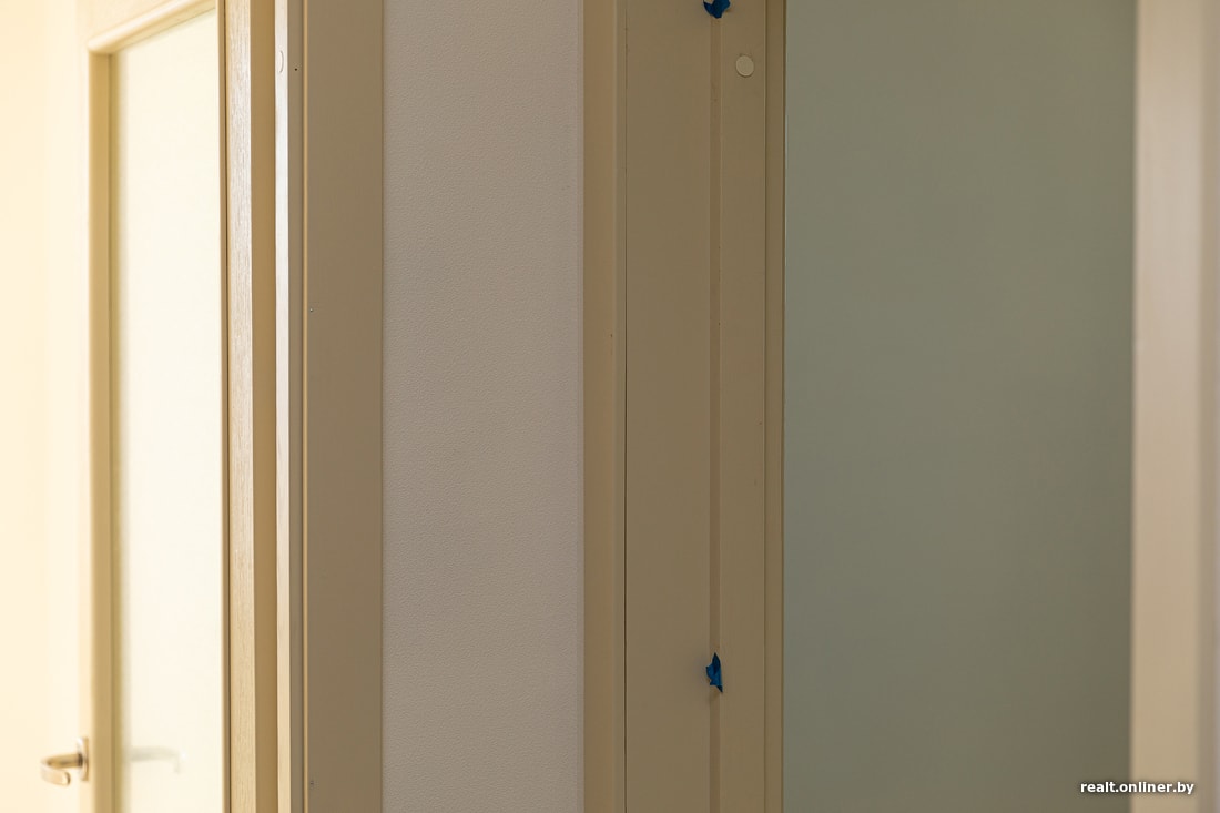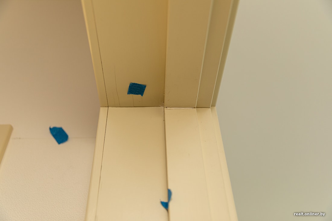 — Честно говоря, тут куда ни посмотри, натыкаешься на какую-то проблему, — делится впечатлениями сотрудник «Эво Лэнда». — Обратите внимание, какая картина открывается перед нами, когда только заходишь в квартиру: взгляд автоматически падает на дверь в гостиную, а она установлена так, что над верхним наличником огромная щель. В этом и заключается проблема завышенных дверных проемов при установке дверей стандартных размеров. Конечно, если у человека рост метр сорок, то ничего и не видно...