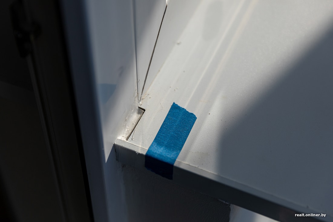 Откосы меня не порадовали: зашлифованы плохо, есть царапины, загрязнения, в месте примыкания к рамам уже идут трещины. Подоконники тоже поцарапаны в некоторых местах, но это исправят при помощи космофена. Главное, чтобы не перестарались и не затерли мелкозернистую фактуру подоконника до глянцевого состояния, — предупреждает Максим, еще один специалист «Эво Лэнда».