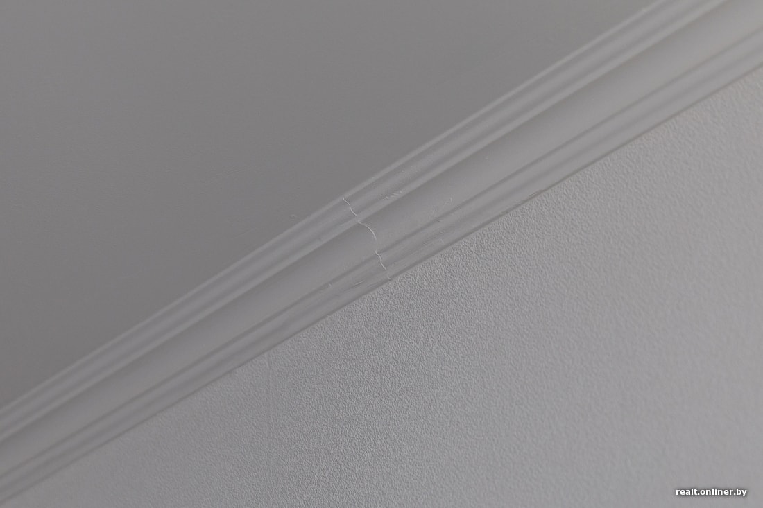 Потолок в целом неплох — зашпатлеван и покрашен, разве что в коридоре есть плохо перетертый участок. Но уже начала себя проявлять панельная сущность дома — шпатлевка в некоторых комнатах стала отстреливать. Специалисты говорят, что дальше — только больше: отслоения себя обязательно проявят.