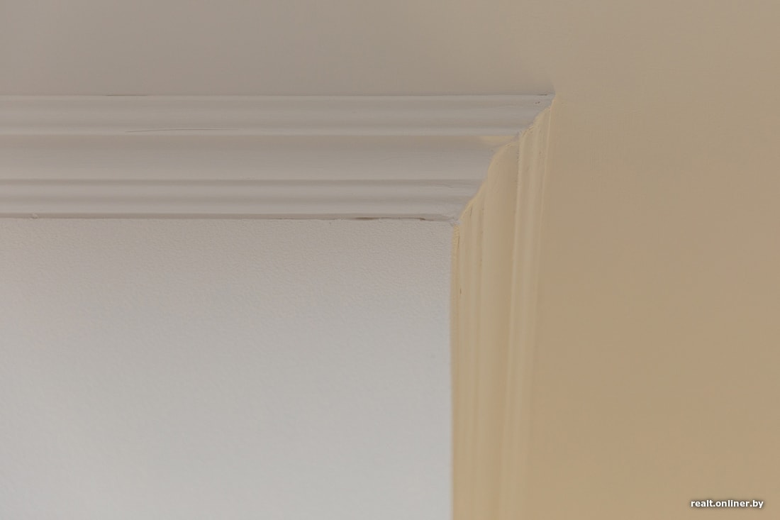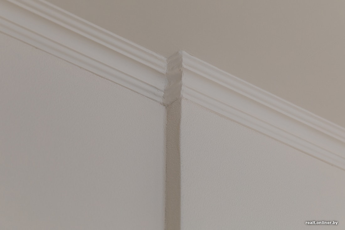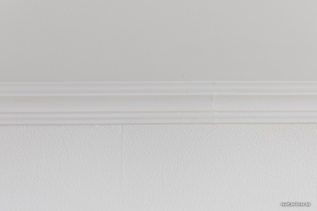 Отдельный привет хочется передать мастерам, которые работали с потолочным плинтусом. Сделать такое — это надо постараться. И если бы потолки в доме были трехметровыми, то еще можно было бы надеяться, что «кашу» в местах стыков никто не заметит. Но у нас обычный «столбик».