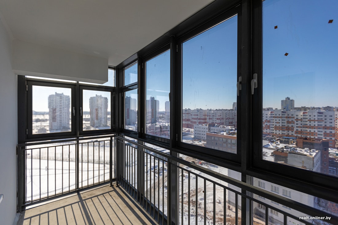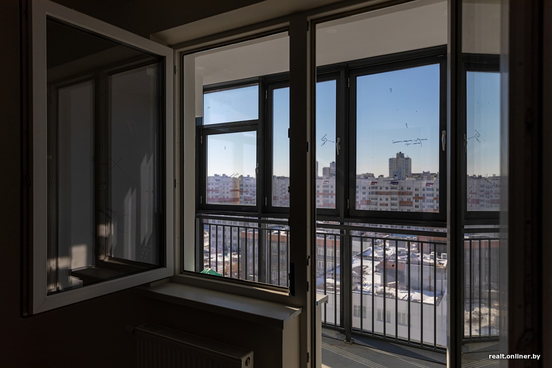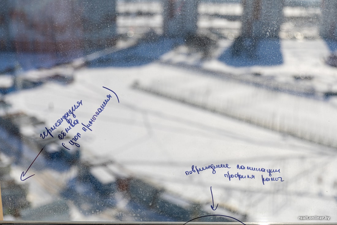 Опять же из хорошего: на лоджии установлены однокамерные стеклопакеты (а не просто закаленное стекло, как любят особо экономные застройщики) с низкоэмиссионным покрытием. Будет тепло. И даже в глубокий минус, при котором проходила наша приемка, это чувствовалось. Кроме того, проектировщики продумали конфигурацию оконных створок — ни одна из них не упирается в бетонный куб под потолком. Раньше это встречалось сплошь и рядом.