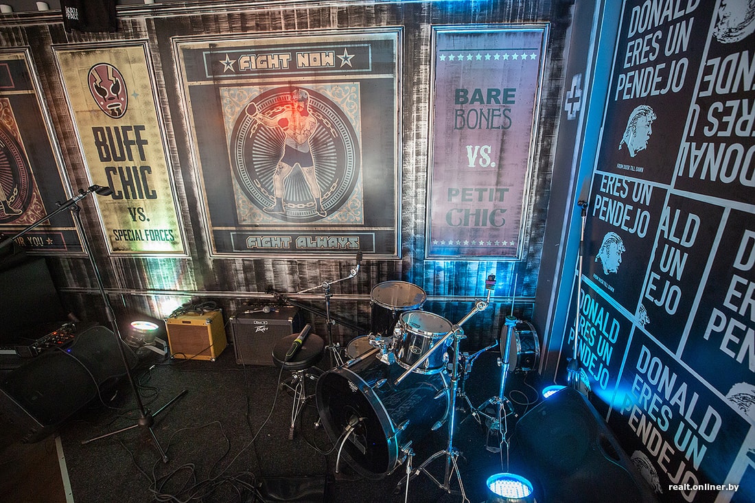 — В фильме бар называется Titty Twister, туда часто заезжают дальнобойщики, дяди на фурах и харлеях, — говорит Михаил. — Там была своя атмосфера: неоновые вывески, красная подсветка. Оттуда мы взяли некоторые детали в интерьере, но в целом — атмосферу безудержного треша и рок-н-ролла.