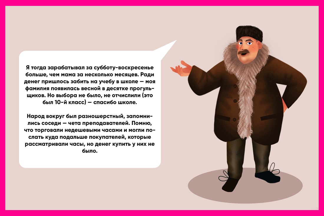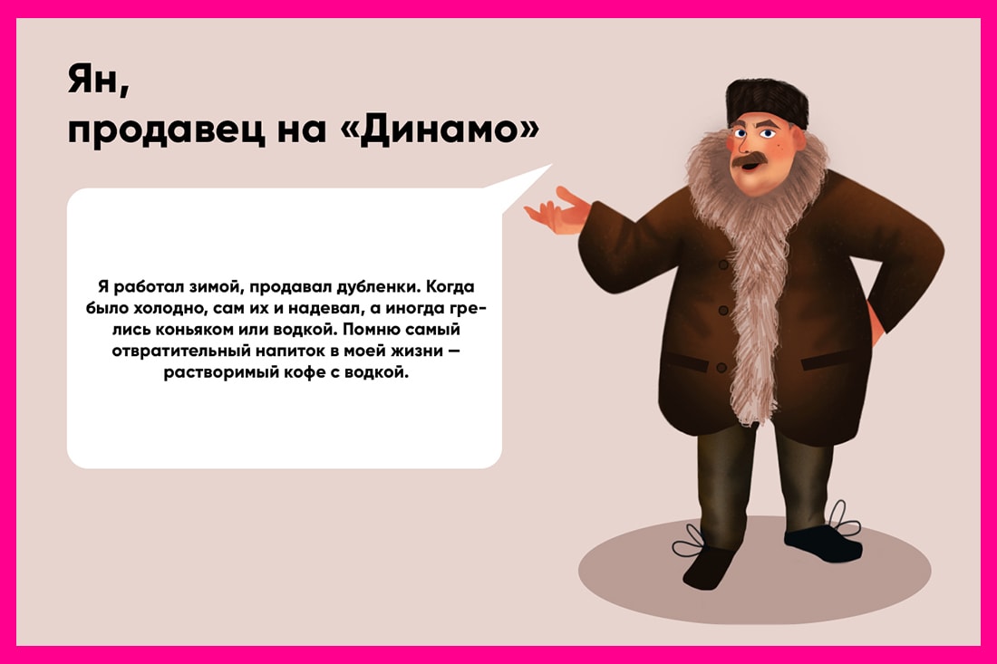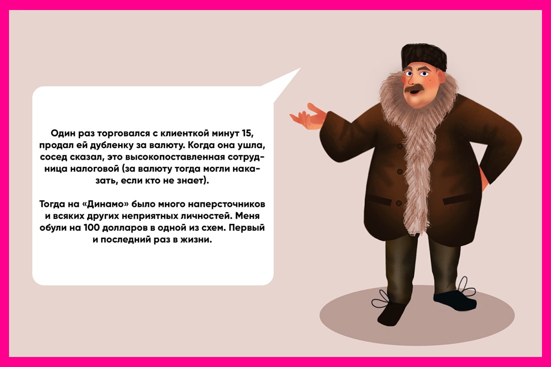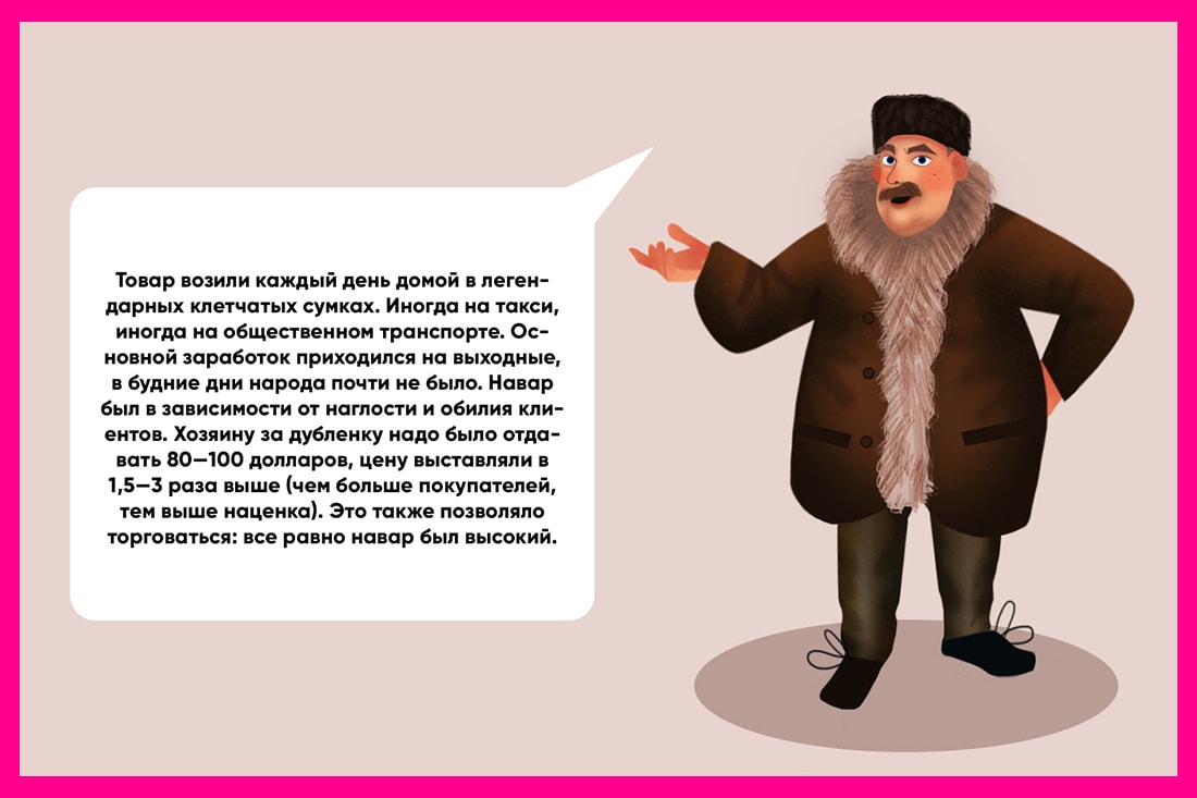 «Смело, не прячась, люди предлагали джинсы, куртки, спортивные костюмы, кроссовки, сапоги, шапки и многое-многое другое»