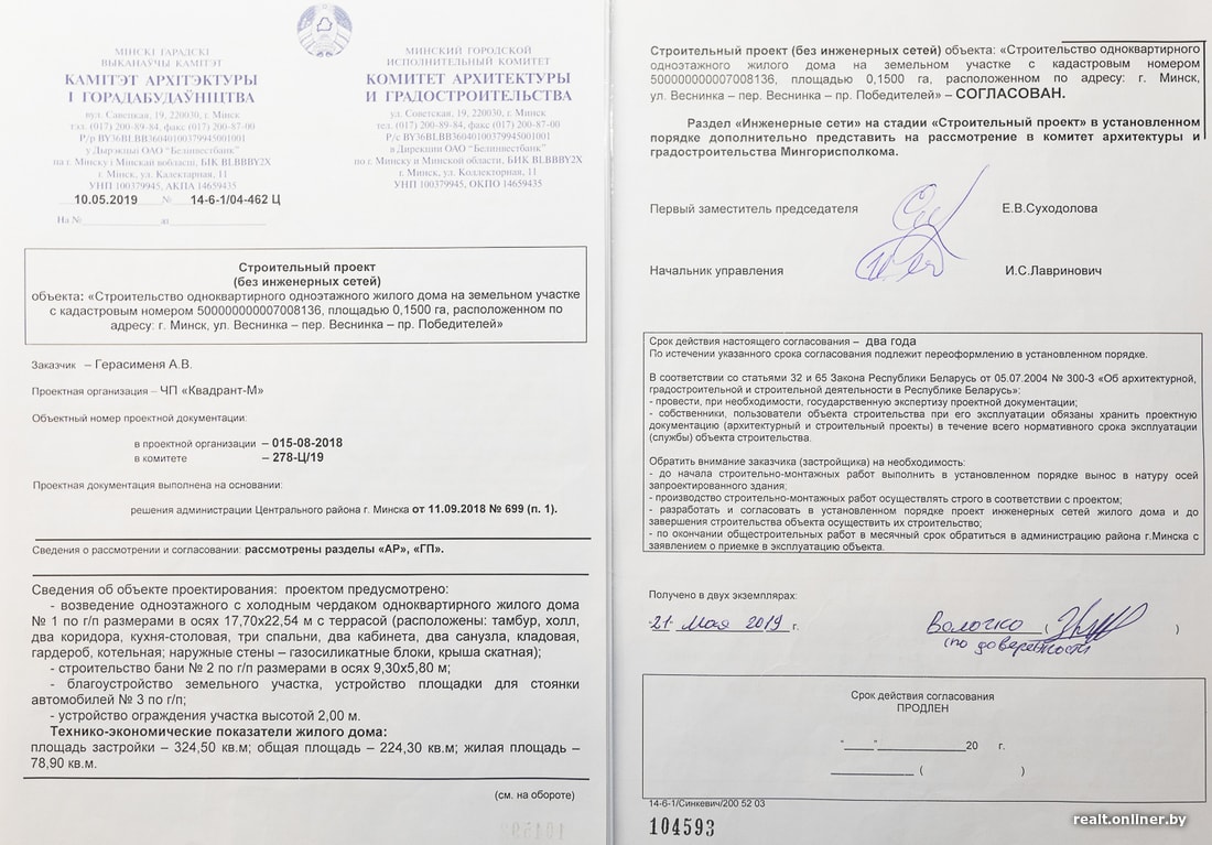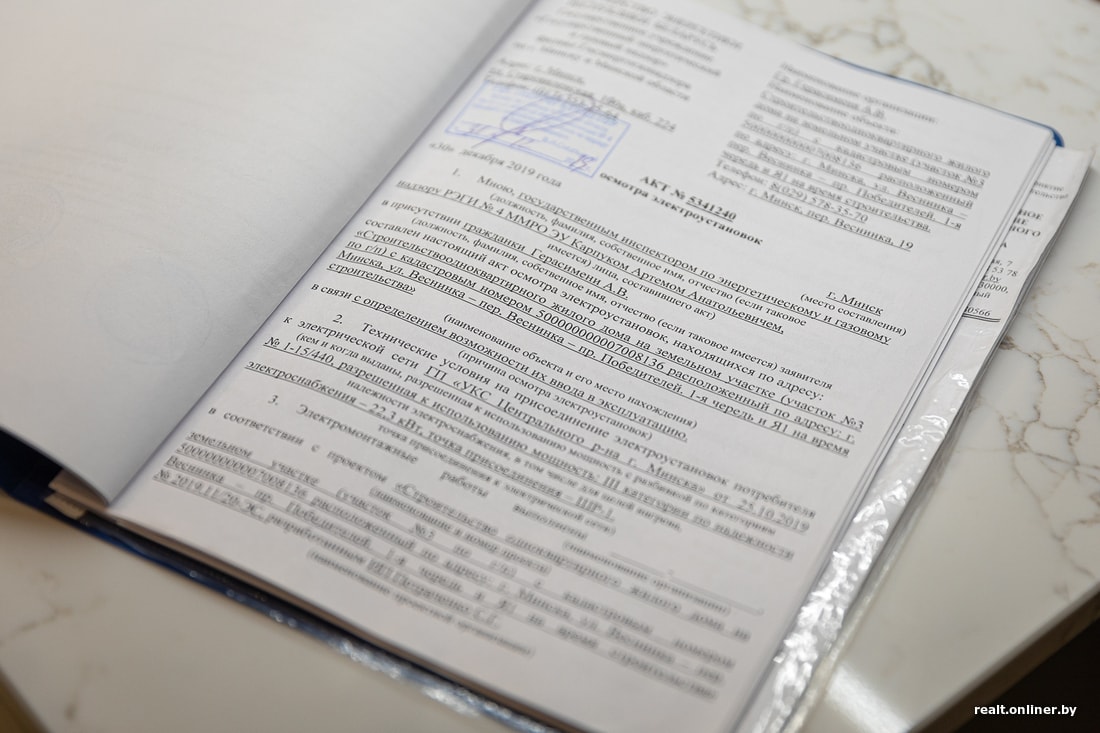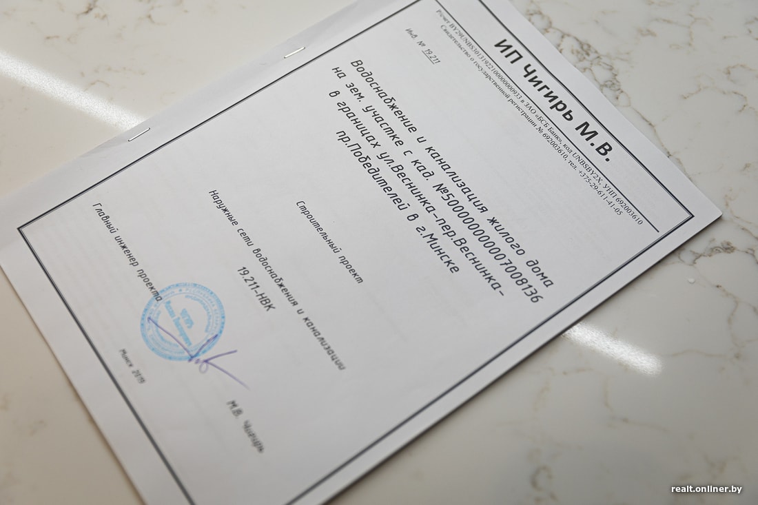 Непосредственно к строительству минчане приступили весной 2019 года. Поскольку к моменту, когда семья «зашла» на участок, кругом были только грязь и разруха, Комитет архитектуры и градостроительства согласовал строительный проект без инженерных сетей. Грубо говоря, документы имелись только на дом и баню. Проекты на газоснабжение, подключение к электричеству и воде-канализации пока не требовались, хотя и подразумевались — не может быть строительства сетей «от себя». Однако в этом же документе сказано и жирным выделено: «раздел „Инженерные сети“ на стадии „Строительный проект“ в установленном порядке дополнительно предоставить в Комитет архитектуры и градостроительства Мингорисполкома».