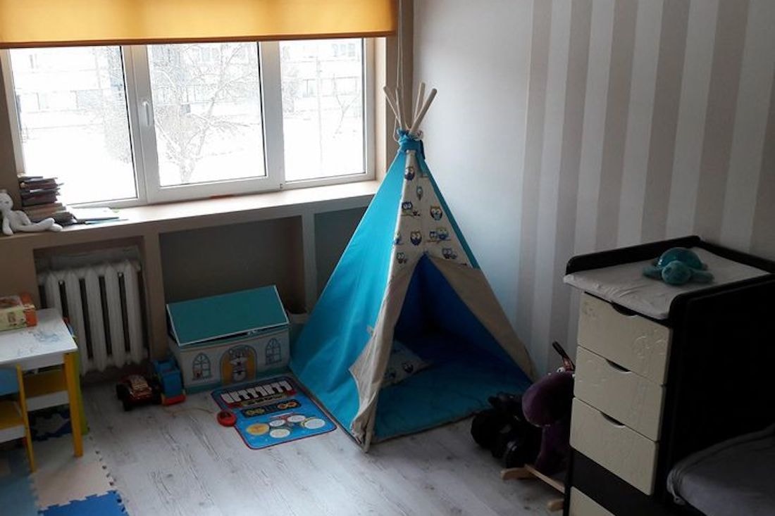 А за €4500 продают уже трехкомнатную квартиру с аккуратной отделкой и стеклопакетами, в которую можно заехать без ремонта. Выглядит она бюджетно, но очень прилично. Общая площадь — 73 кв. м, находится на 1-м этаже пятиэтажного дома и даже имеет балкон.