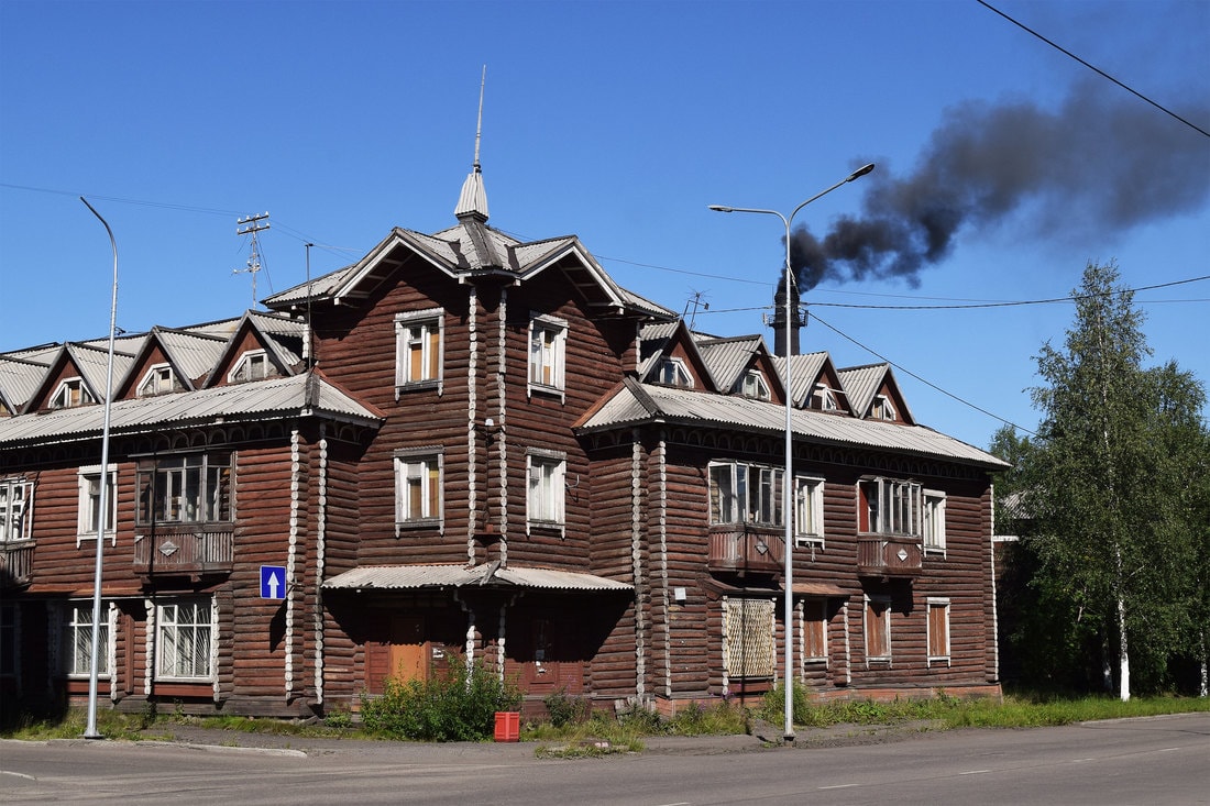 В Инте много домов, представляющих собой срубы, причем архитектура у них довольно затейливая. Хрущевские пятиэтажки здесь сплошь состоят из кирпича, а панелек в городе почти нет. Отсутствует и газ, поэтому дома отапливаются по старинке — с помощью ТЭЦ, работающей на угле. Из местной кочегарки постоянно валит черный дым, застилающий небо над городом.