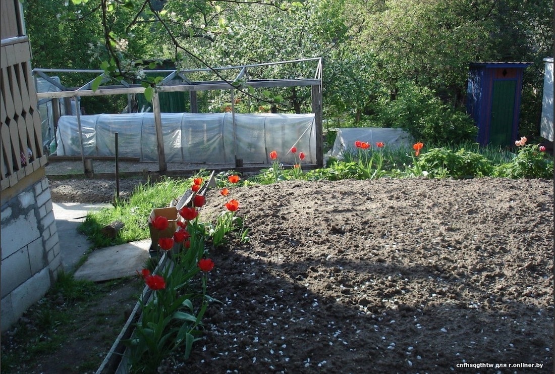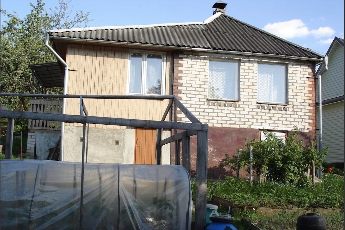 За $7000 на продажу выставлена добротная дача с удобствами в c/т «Пролески» Воложинского района, что в 35 км от МКАД. У строения есть эксплуатируемый цоколь, жилая часть обложена кирпичом, веранда аккуратно ошалевана доской, красиво оформлено крылечко. Внутри есть печка и даже санузел с ванной и бойлером на 50 л. Площадь дома — 50 «квадратов», участка — 4,5 сотки. Земля возделана по старинке — грядками с клубникой, тюльпанами и парниками.