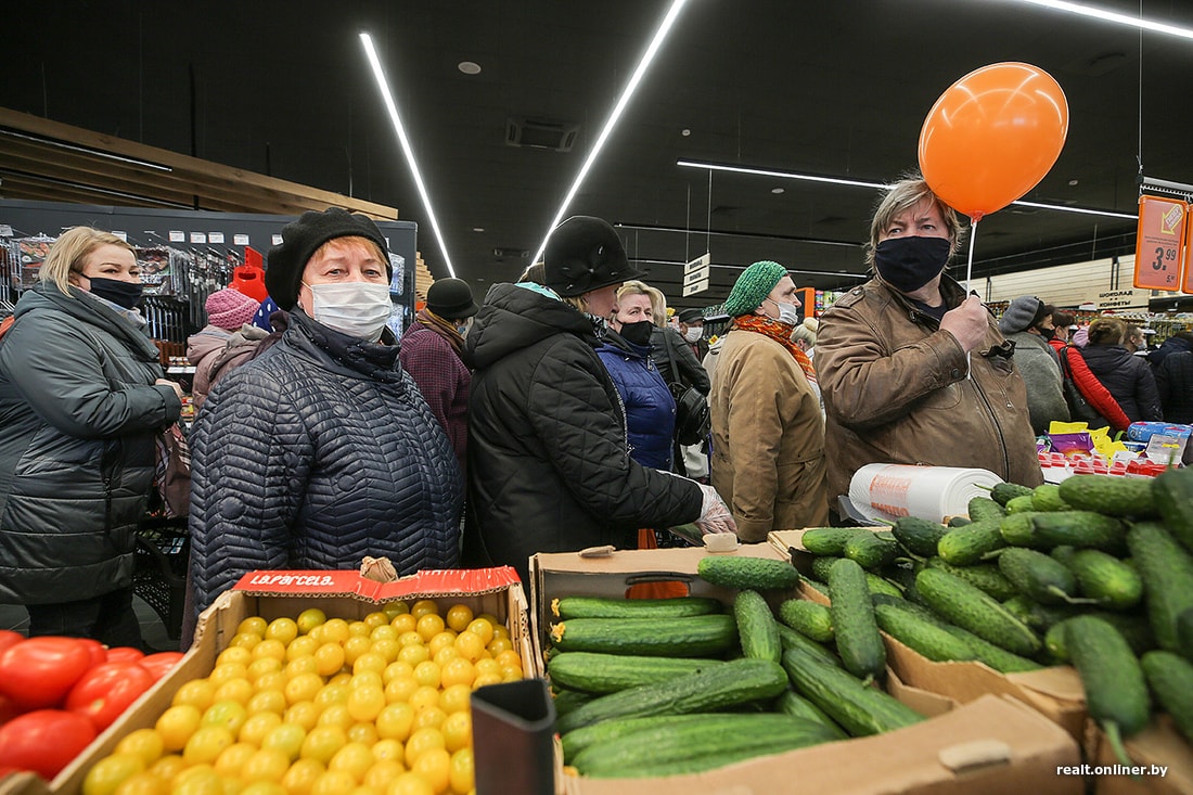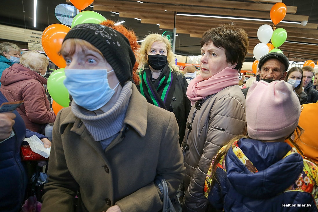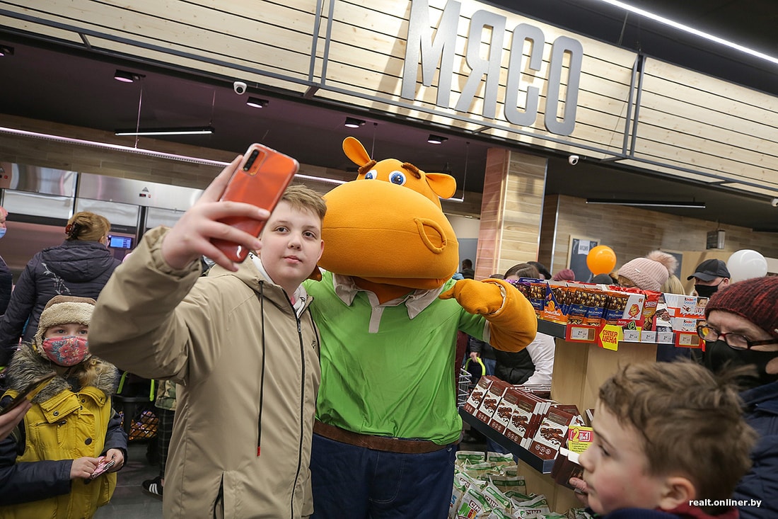 Официально открытие было назначено на 15:00, но еще за полчаса до момента икс к парадному входу начали стягиваться люди. Оно и не удивительно: акционных товаров (теоретически) на всех может и не хватить. Поэтому кто успел, тот и схватил продукты с желто-красным ценником. И оформил скидочную карту, которая будет давать пусть и маленький, но все-таки бонус к каждой покупке.
