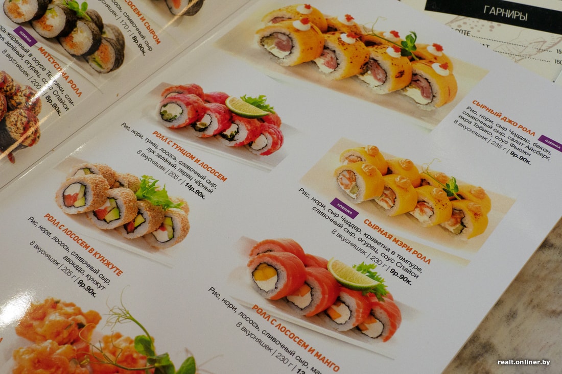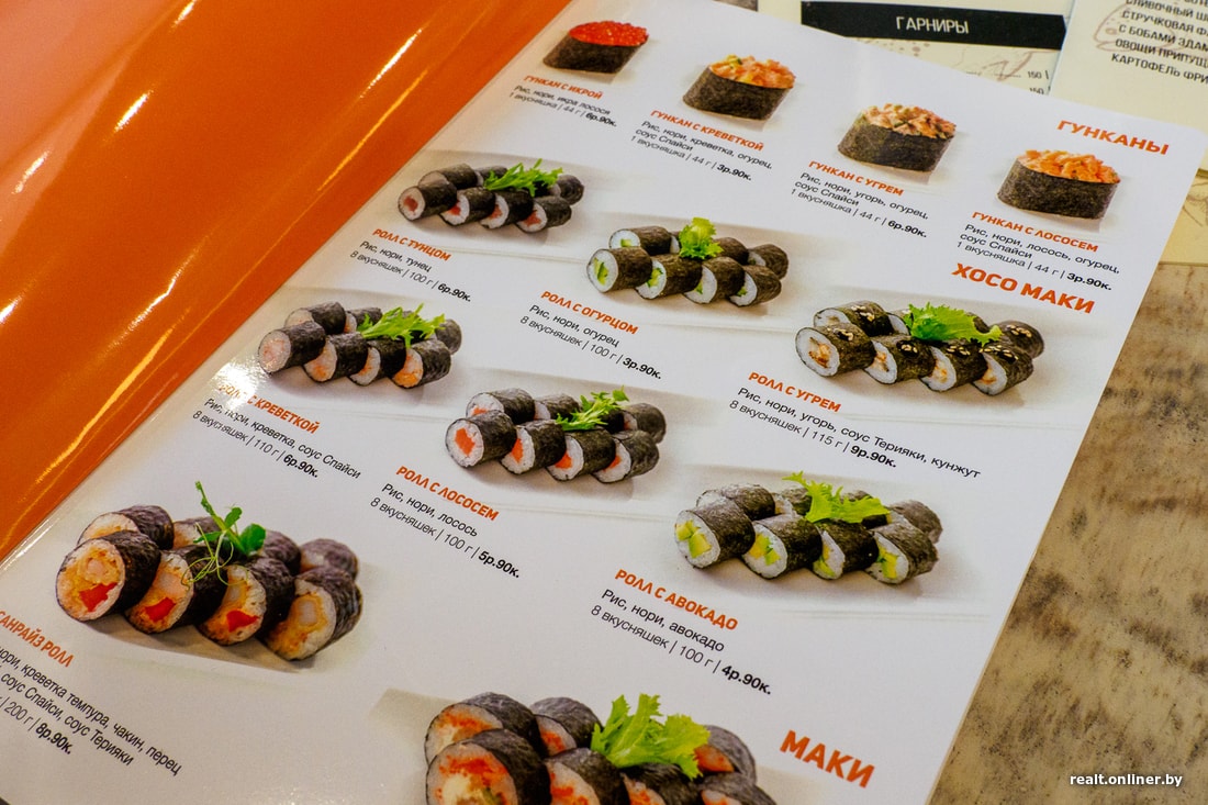 В новом гастробаре 24 посадочных места, брони столиков нет. Говорят, пока этого хватает, но в будущем планируют организовать небольшую летнюю террасу. Заказывать можно не только из того, что лежит на «ледяном» прилавке, но в том числе пройтись по меню Fusion Sushi.