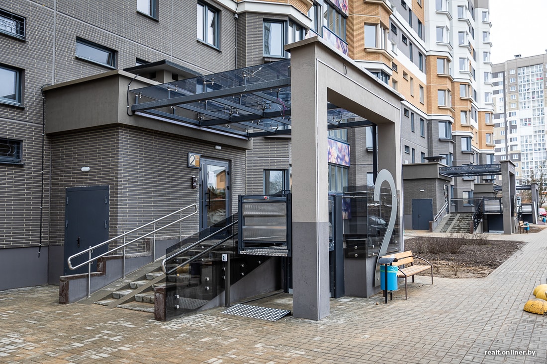Оригинально обустроены и входные группы: от ступенек отказаться мы еще не можем, но зато прозрачные двери и аккуратные ограждения уже вошли в чат. Некоторым квартирам на первом этаже даже повезло обзавестись собственными террасами — без отдельного входа и кусочка земли, где можно было бы летом проводить время, но зато с возможностью поставить столик и пару туй в кадке. МАПИД радует, что тут говорить.