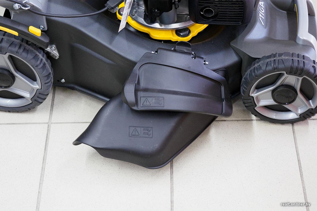 В бензиновой газонокосилке без функции самоходности не обойтись: агрегаты тяжелые, как правило, в металлическом корпусе, к тому же с большим мешком для сбора травы — попробуй потолкай саму машину плюс дополнительный груз объемом 70—80 литров. Так что экономить на этом пункте не стоит.