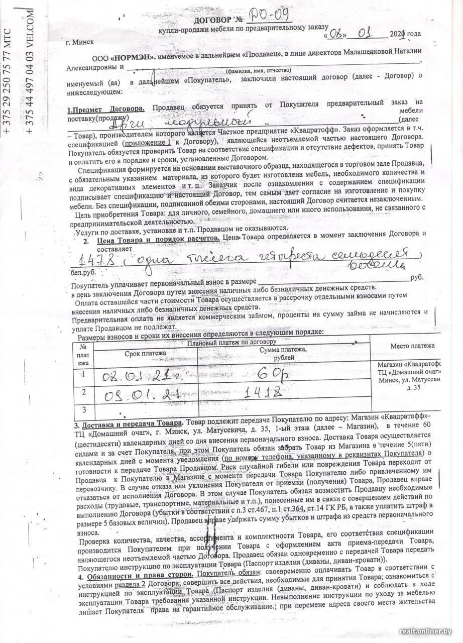 Сейчас в группе состоит 54 человека. В основном это минчане, заказавшие мебель в декабре — феврале. Некоторые ждут ее с октября и ноября, есть и те, кто заключил договоры в начале марта. А у одной из пострадавших на руках осталось дополнительное соглашение, по которому срок изготовления и вовсе продлили до 10 апреля.