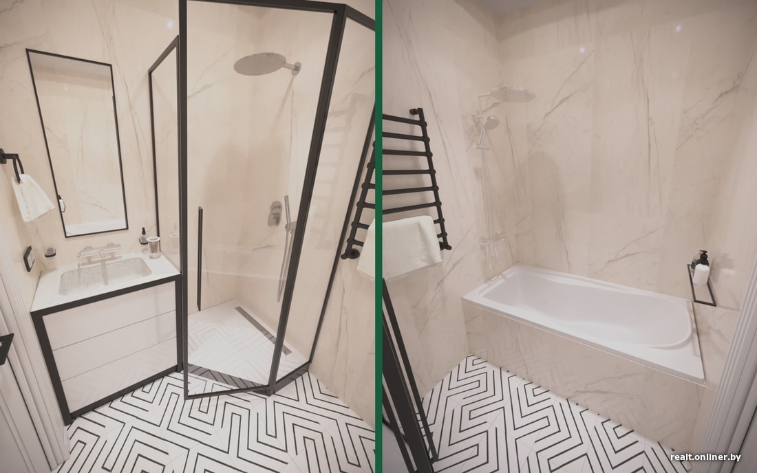 Пара рассматривает исключительно раздельный санузел и наличие как ванны, так и душевой. Своеобразная мечта — небольшая постирочная со стиральной и сушильной машинами.