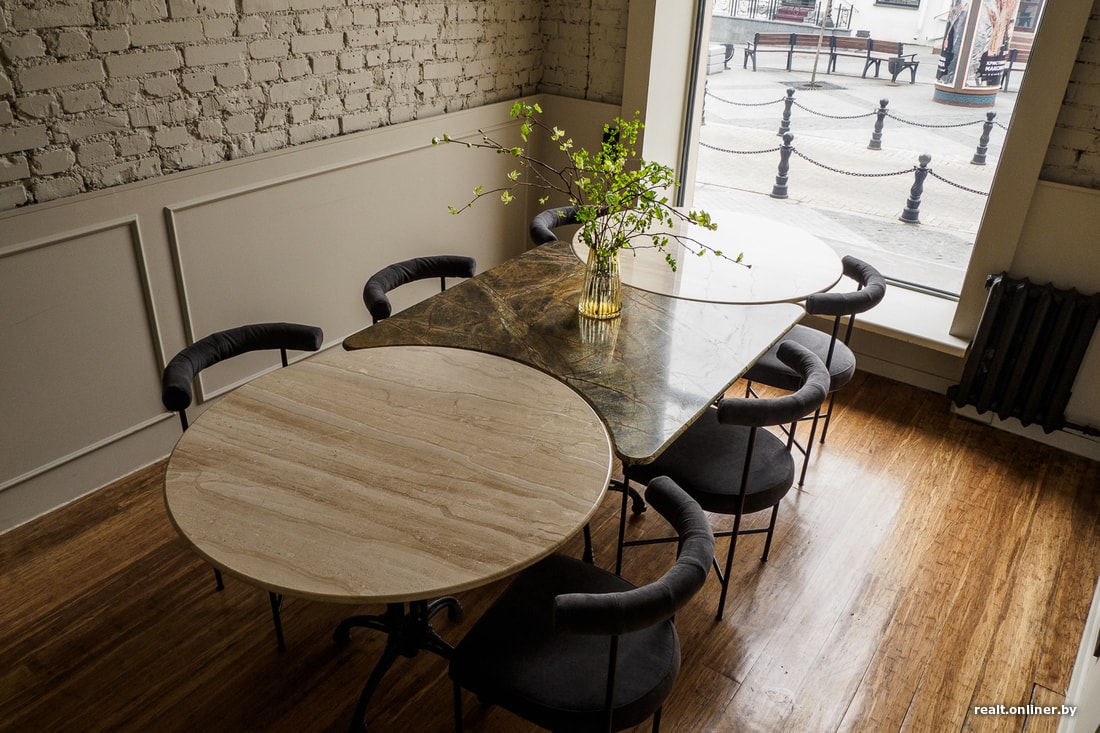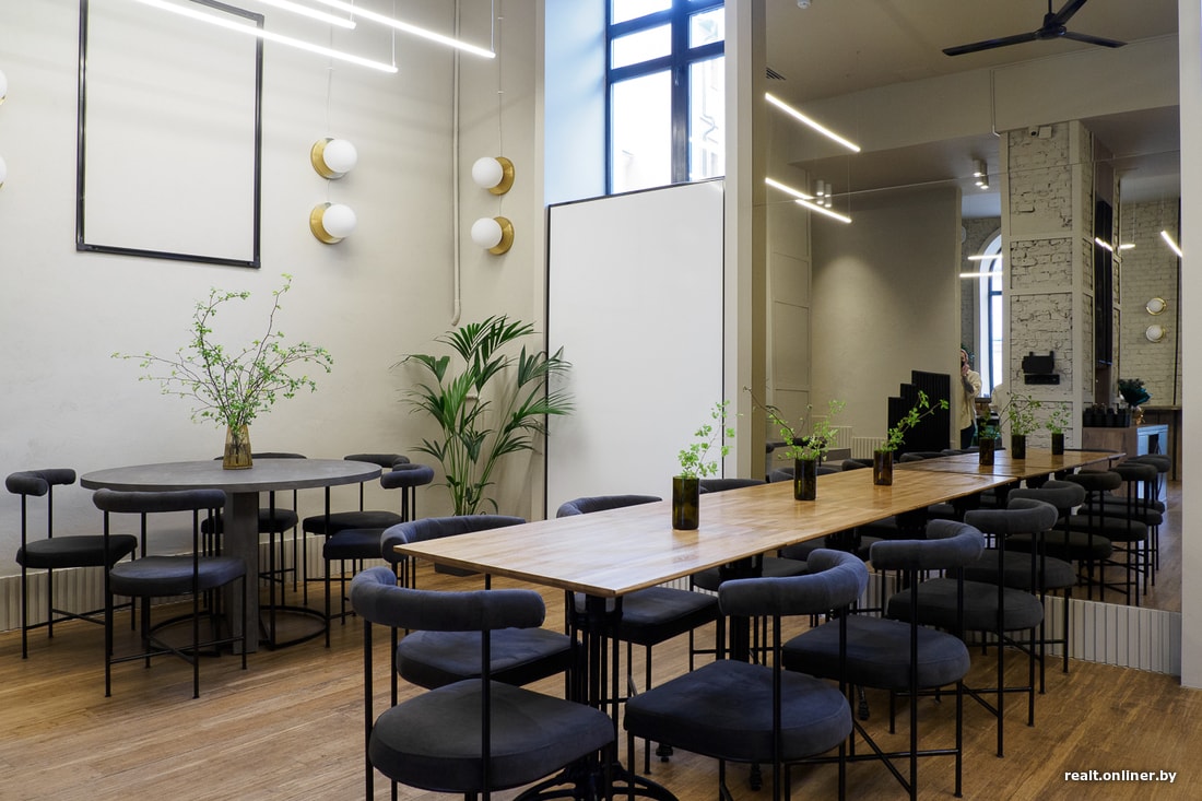 — Мы ушли в светлые тона, но не стерильно-белые, а в чуть потускневшие, которые всем своим видом говорят, что уже немного повидали жизнь. Оставили кирпичную кладку, добавили больше света, зеркал, чуть-чуть зелени. Визуально продлили окна под потолком с помощью световых панелей. Все очень натурально, мягко, ничего кричащего. Хотим, чтобы разные люди чувствовали себя здесь одинаково комфортно, — рассказывает Лиза Лизунова.