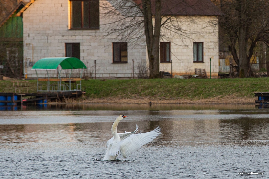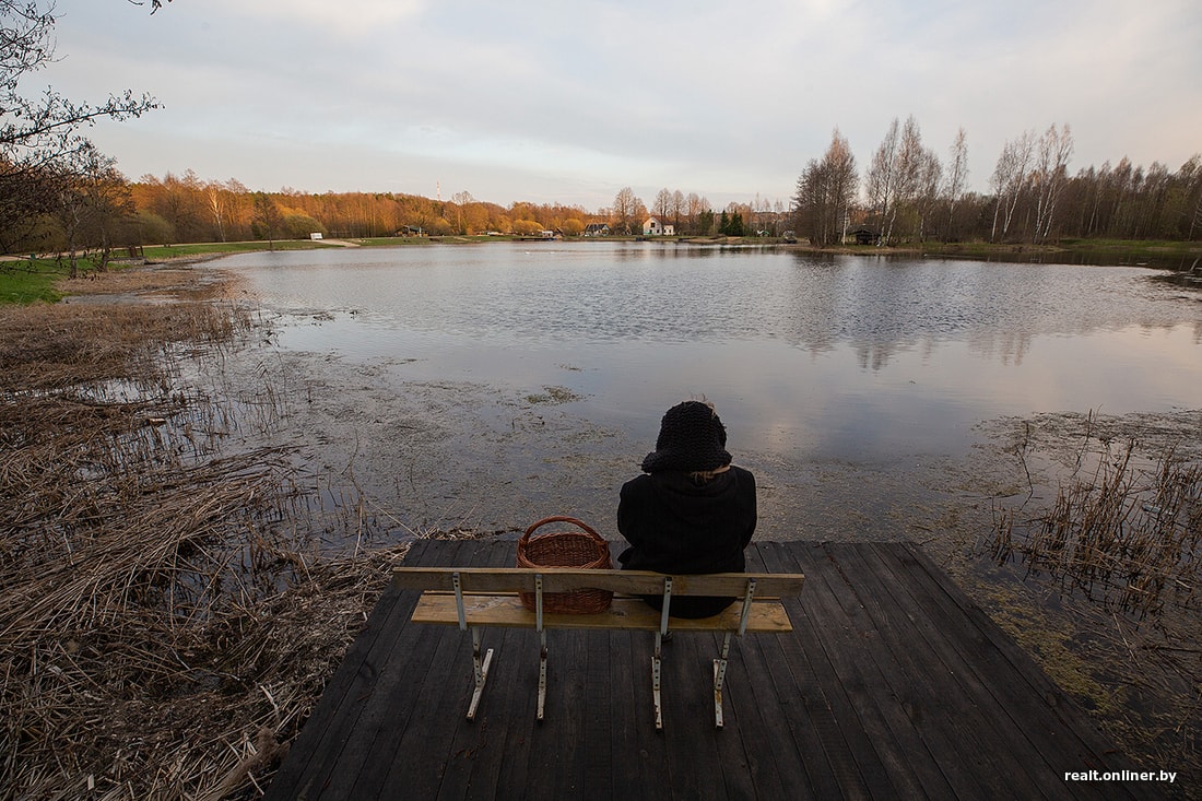 Предоставленные сами себе, мы наконец осмотрелись. Природа вокруг заставила содрогнуться укатанное в бетон сердечко. С одной стороны — красивейшее озеро. Летом в нем можно будет искупаться, правда наверняка придется делить берег с рыбаками. С другой стороны — деревья, ручей, чуть дальше виднеются поле и лес. Повсюду раздается пение птиц. Сергей Иванович обнадежил, что при большом везении наткнемся на зайцев, лисиц, волков или даже бобров. Ну или они на нас наткнутся.