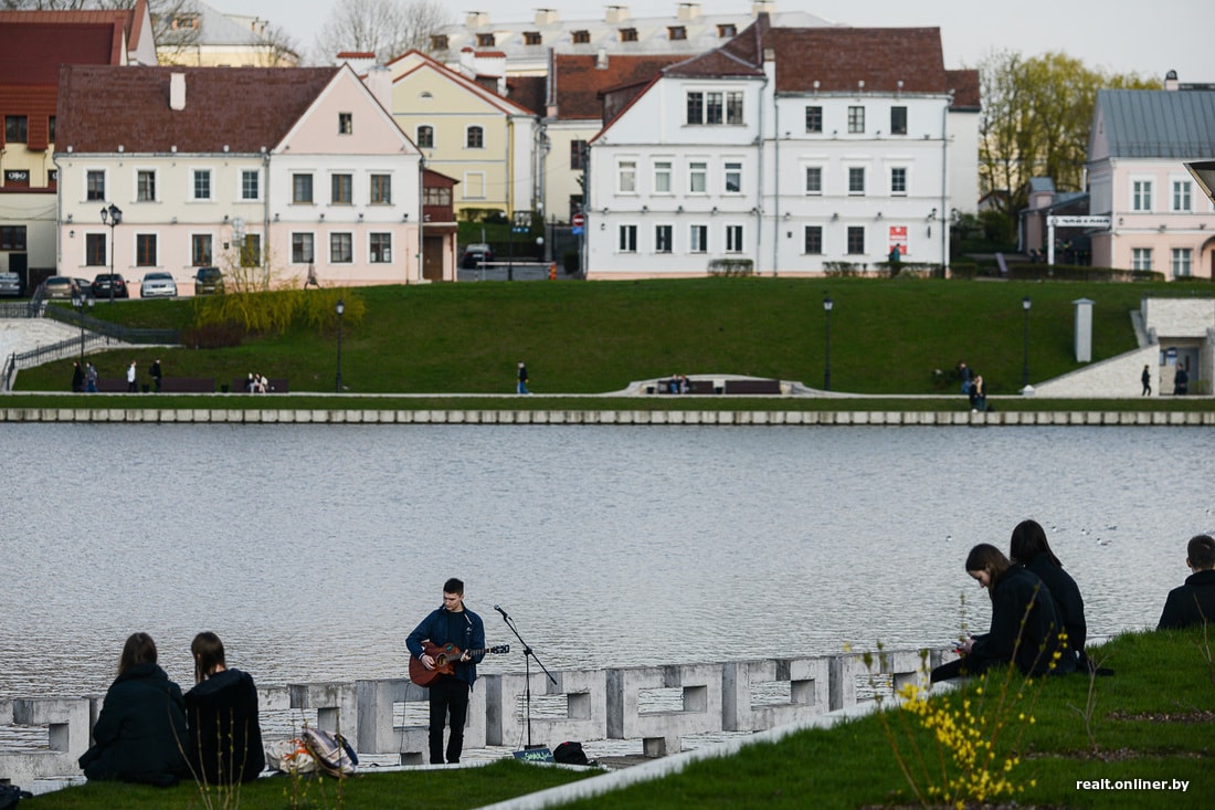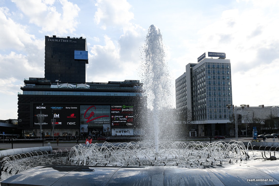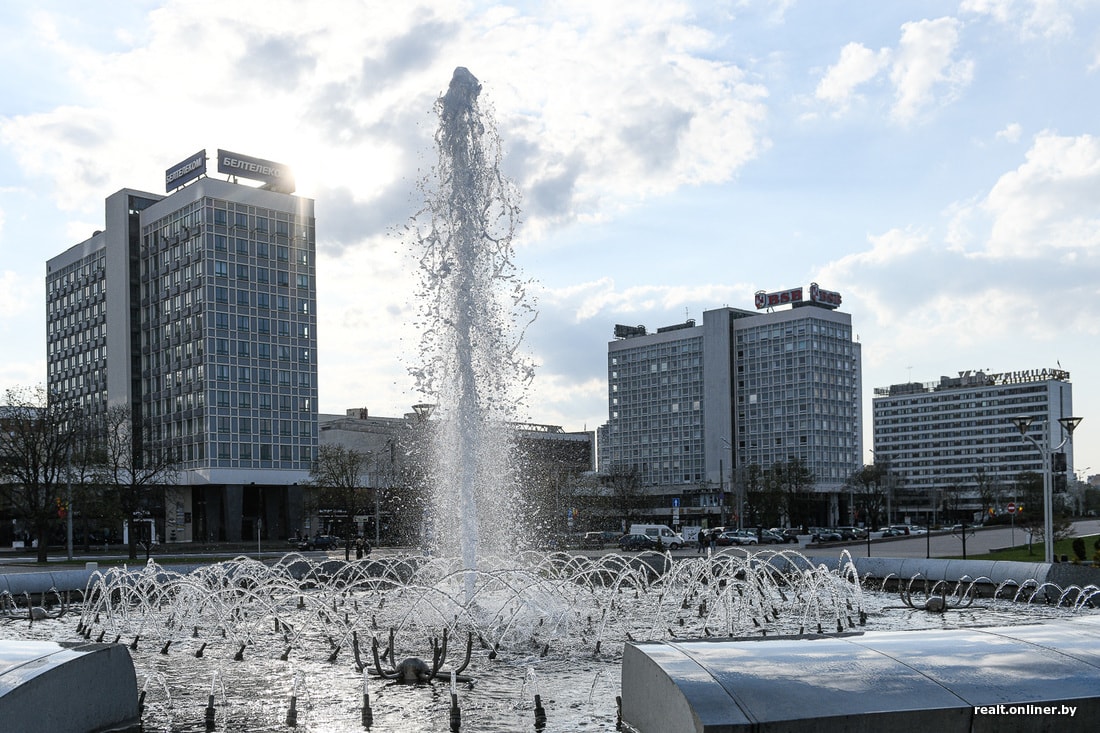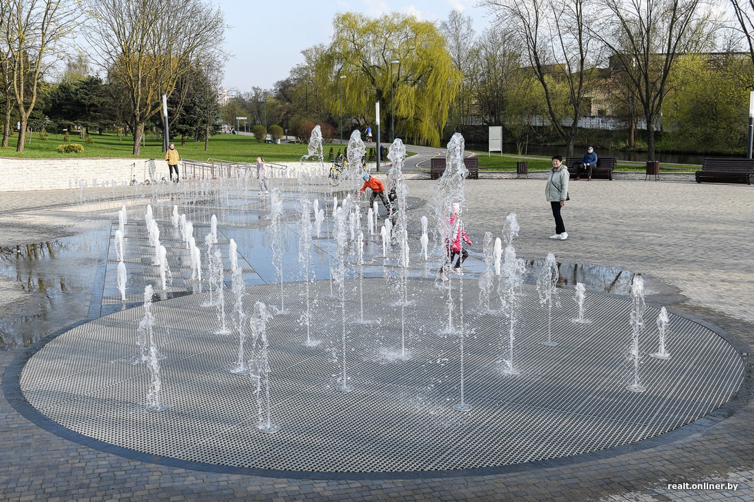 Наш фотограф отметил, что на момент съемки (около 19:30) в столице работали не все фонтаны. В частности, еще не был запущен самый дорогой и самый «умный» фонтан на реке Свислочь (напротив парка Купалы), открытый в прошлом году.