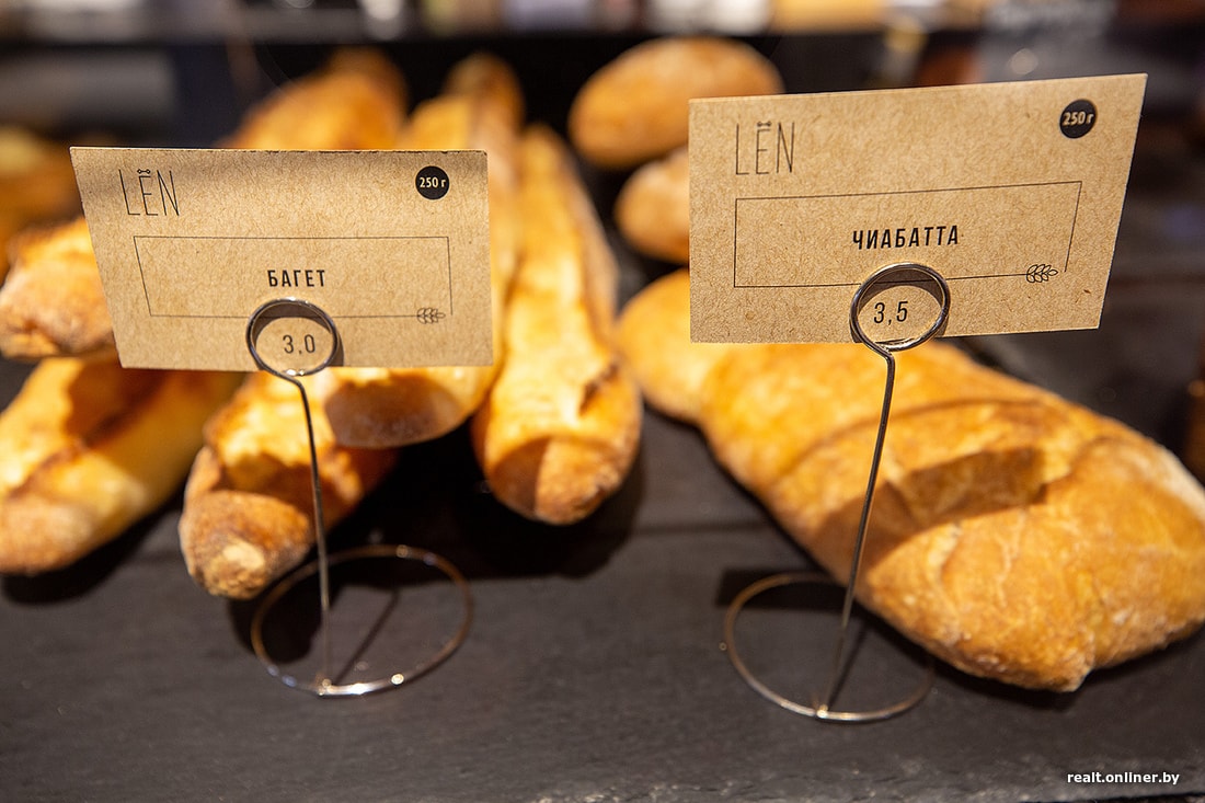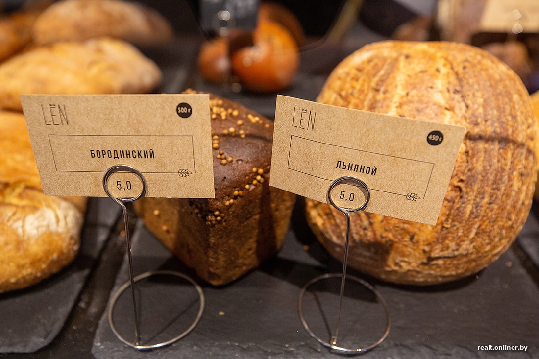 Кроме сладкого есть крафтовый хлеб. К сожалению, приходится мириться с тем, что хлеб в минских пекарнях стоит намного дороже магазинного. Стоимость доходит до 7 рублей за булку. Зато хлеб делается вручную и из натуральных ингредиентов.